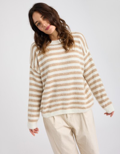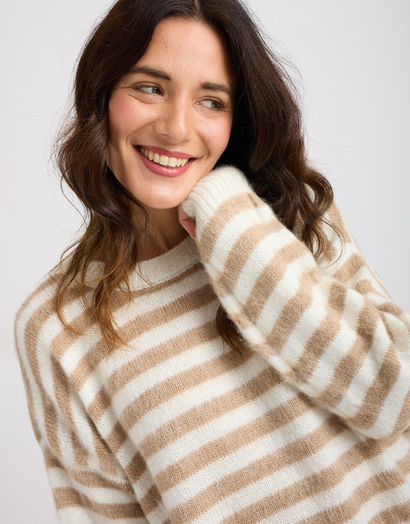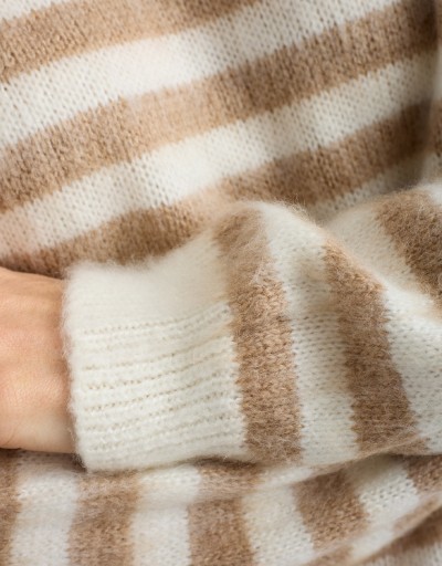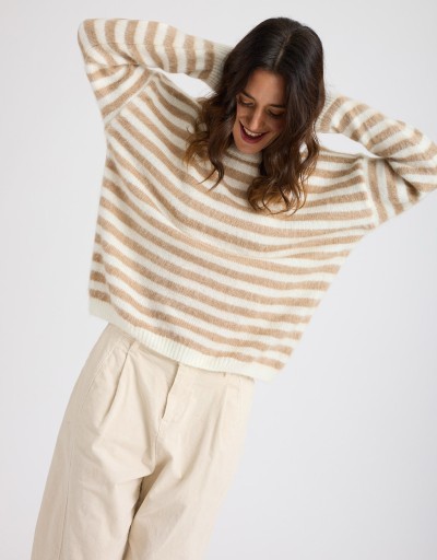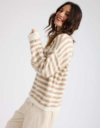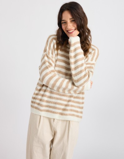 Caldo maglione in misto lana a righe.