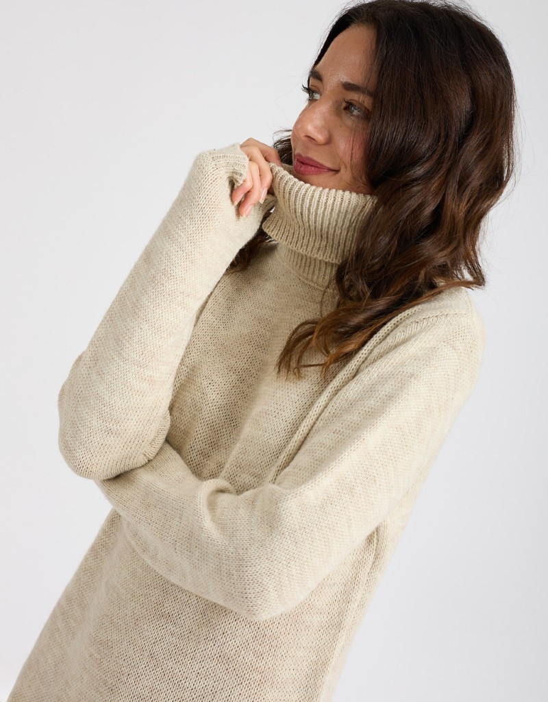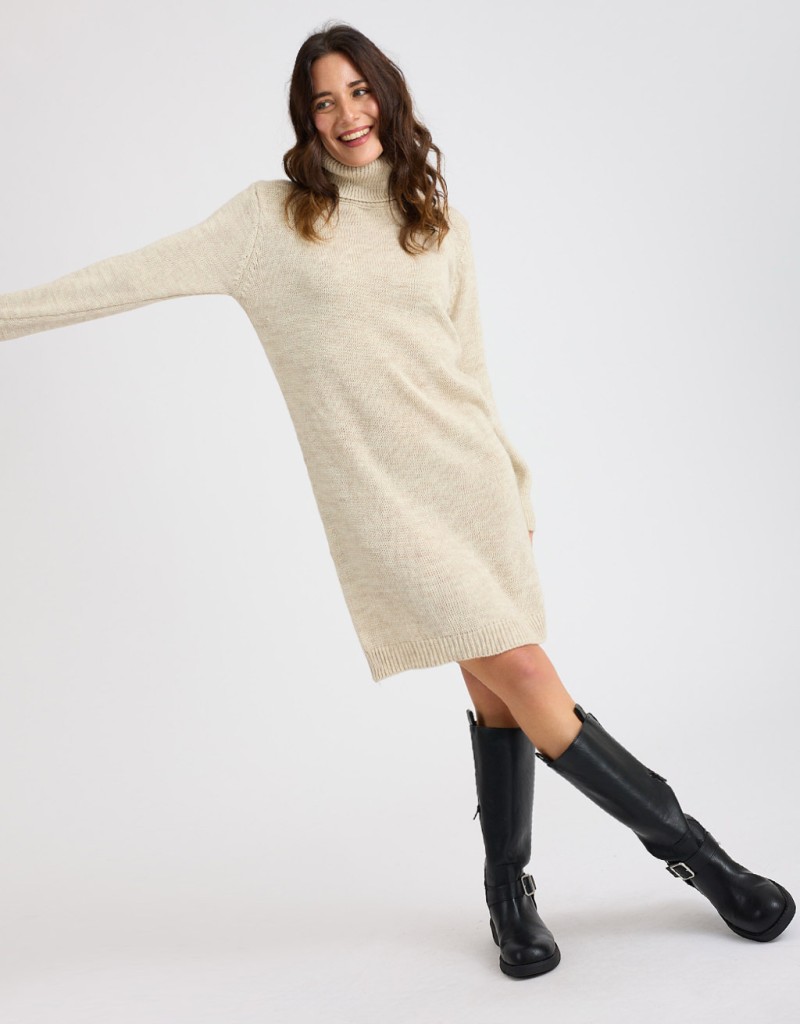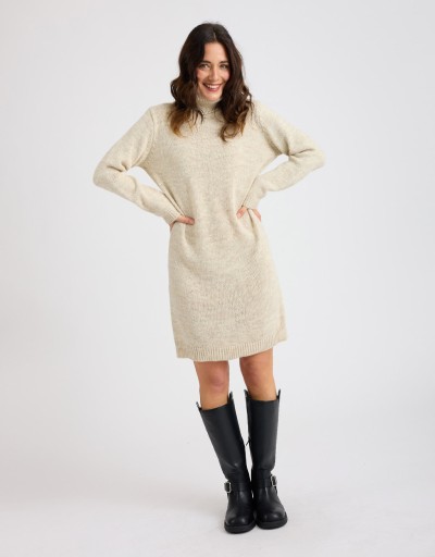 (Ogni 1,00 € speso = 1 punto)Caldo abitino in misto lana con collo alto e profili a costina.