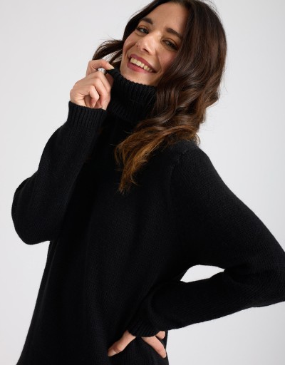 Caldo abitino in misto lana con collo alto e profili a costina.