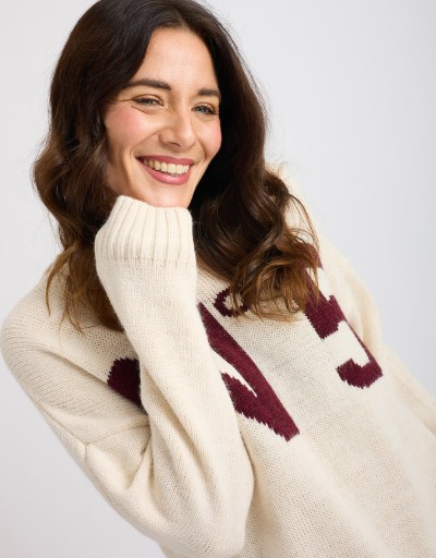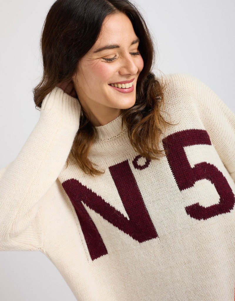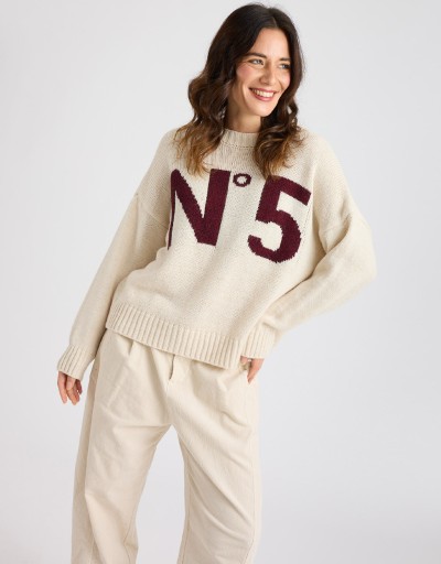 (Ogni 1,00 € speso = 1 punto)Caldo maglione in misto lana ed alpaca con scritta n.5
