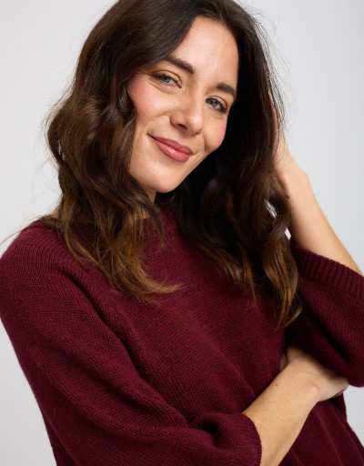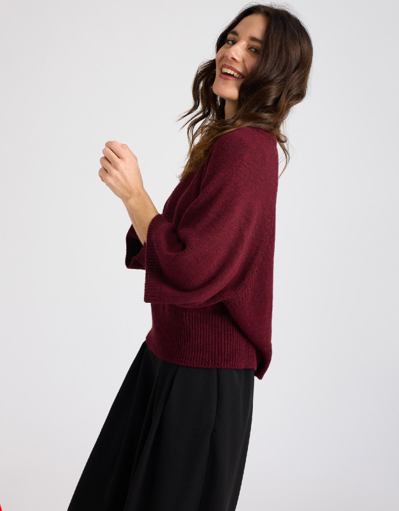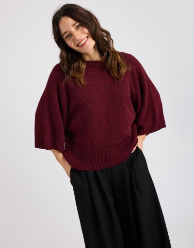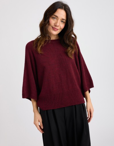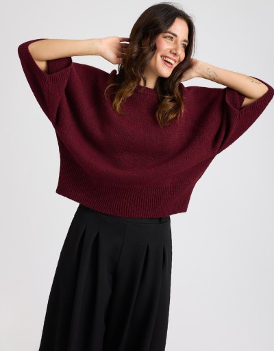 (Ogni 1,00 € speso = 1 punto)Caldo maglione in misto lana caratterizzato da una larga manica a 3/4 e da una fascia a costine in vita.