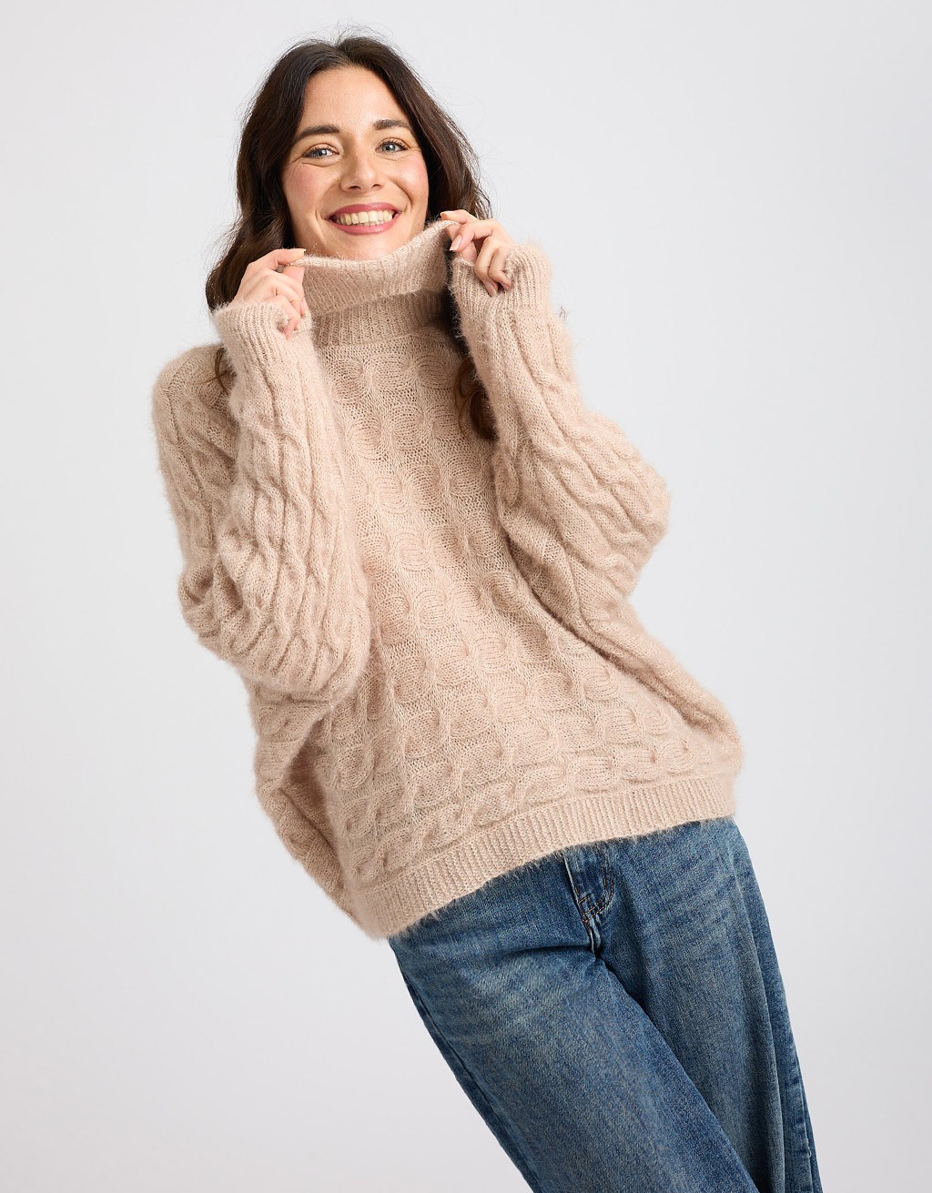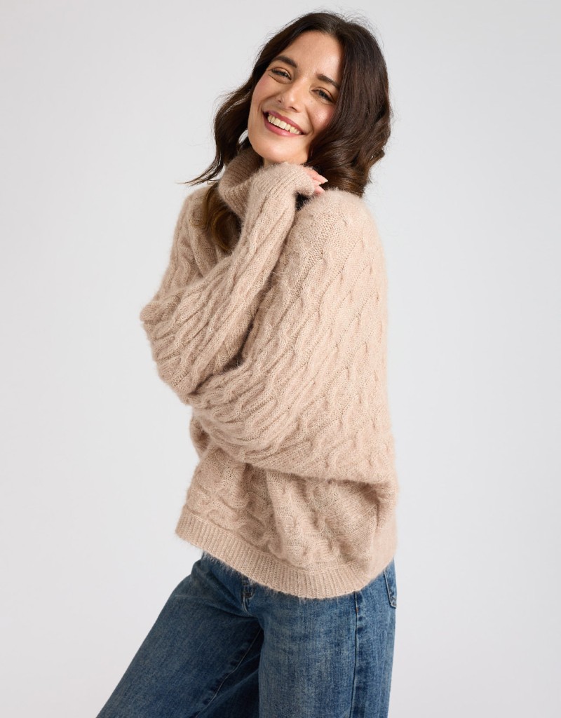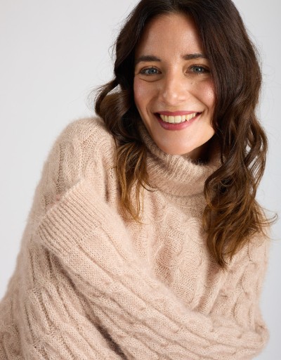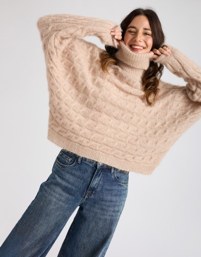(Ogni 1,00 € speso = 1 punto)Maglione con lavorazione a treccia caratterizzato dal collo a ciambella e manica a pipistrello.