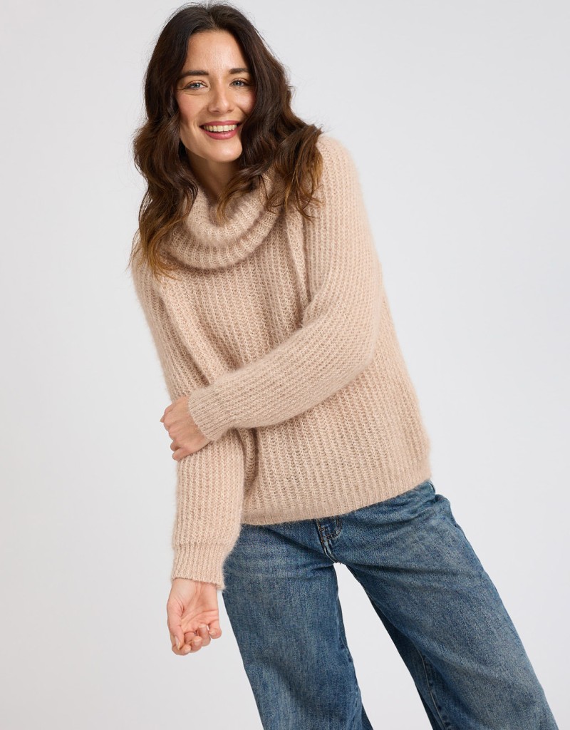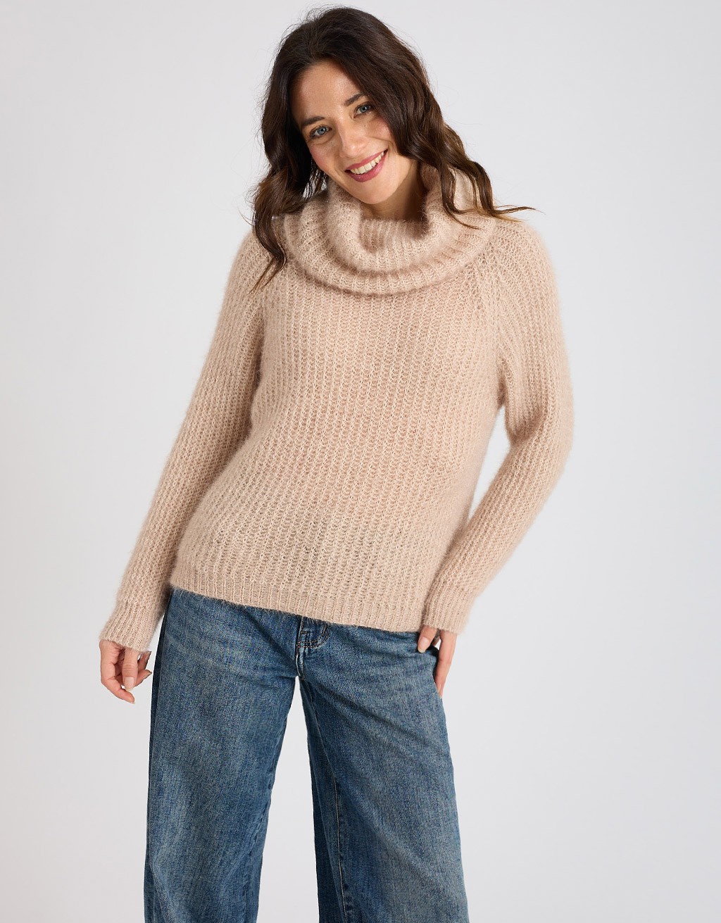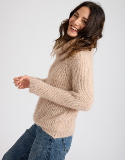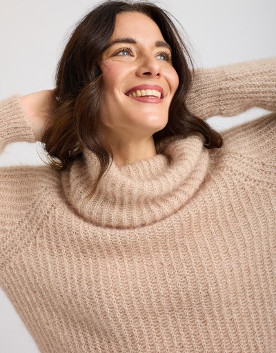Maglione da morbido tessuto "peloso" con collo a ciambella.