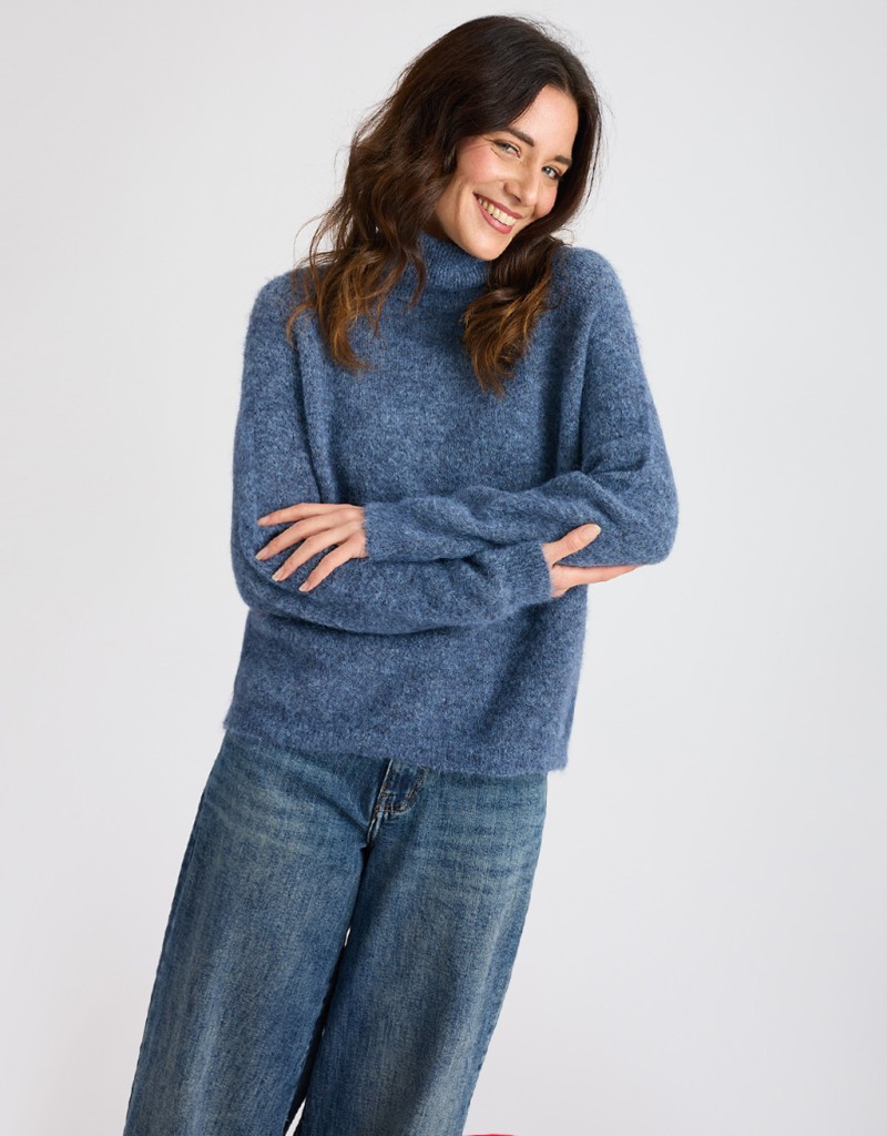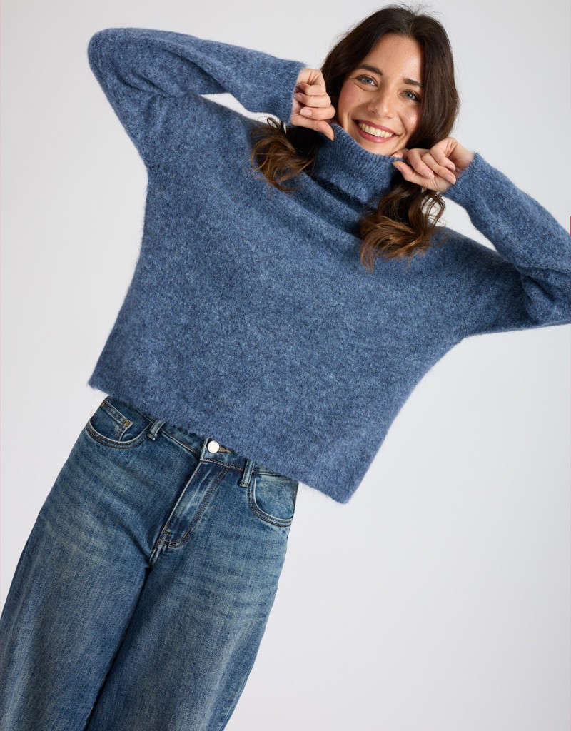 Maglione con collo a ciambella dal tessuto caldo e morbido al tatto, arricchito da una percentuale di lana (12%) che ne aumenta la morbidezza e il comfort. Il design semplice e pulito lo rende un capo essenziale e facile da abbinare, perfetto per completare outfit quotidiani o look più curati. Ideale per affrontare la stagione fredda con stile e praticità.