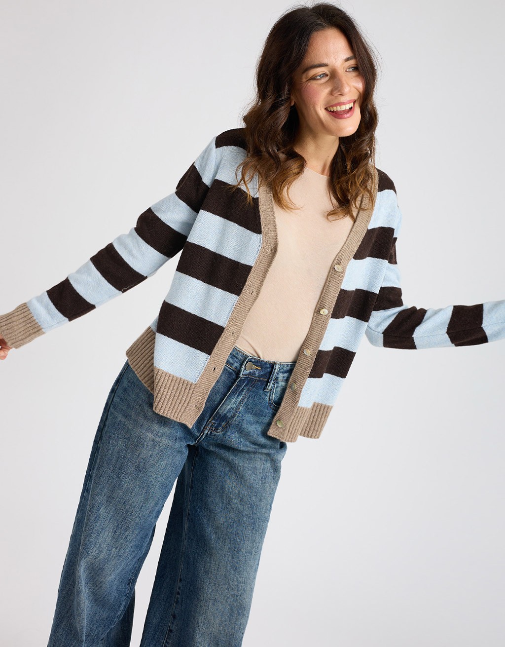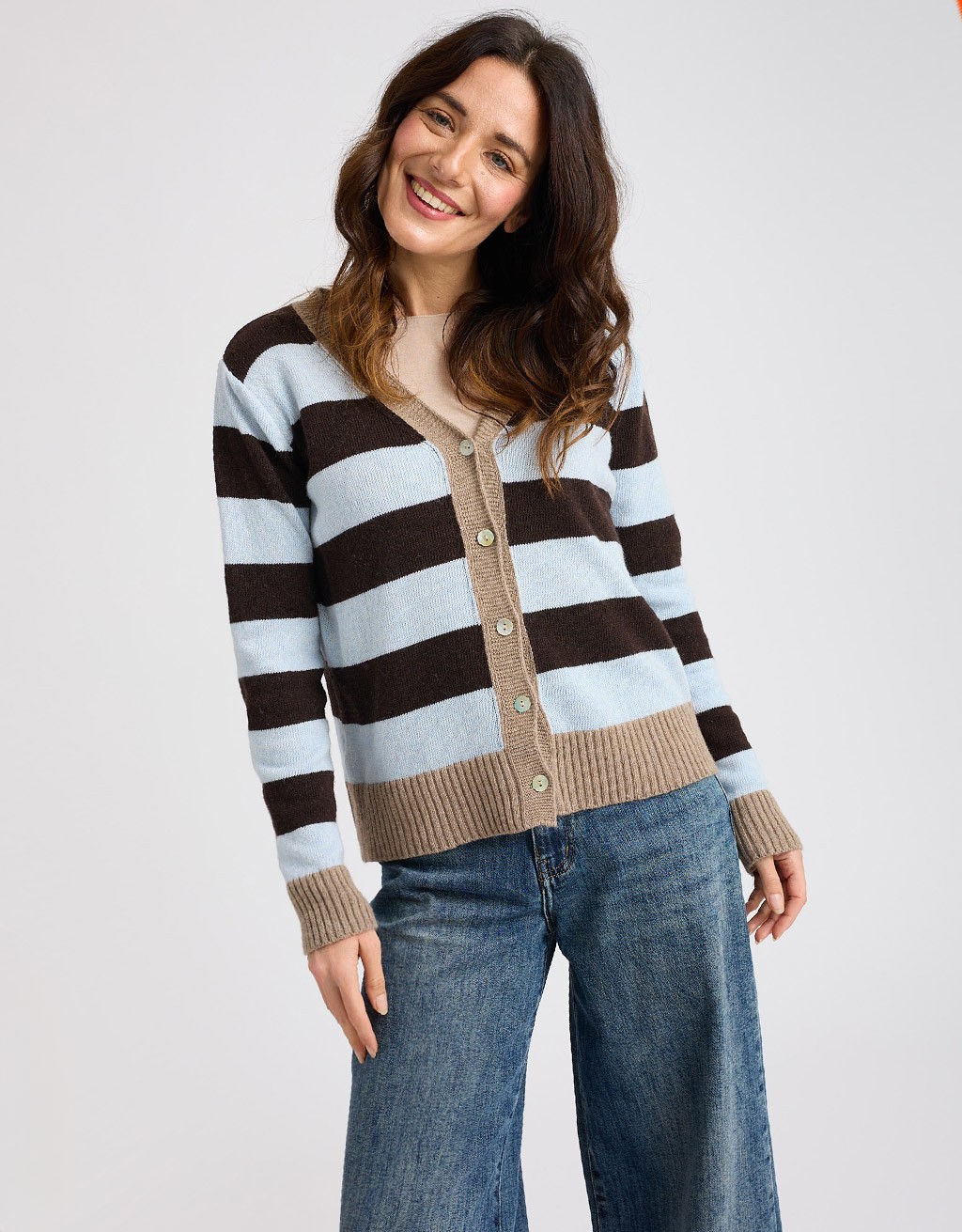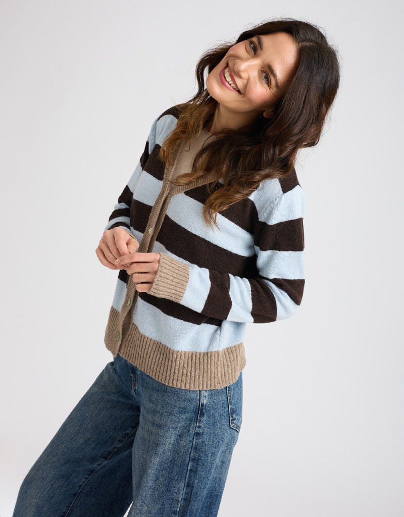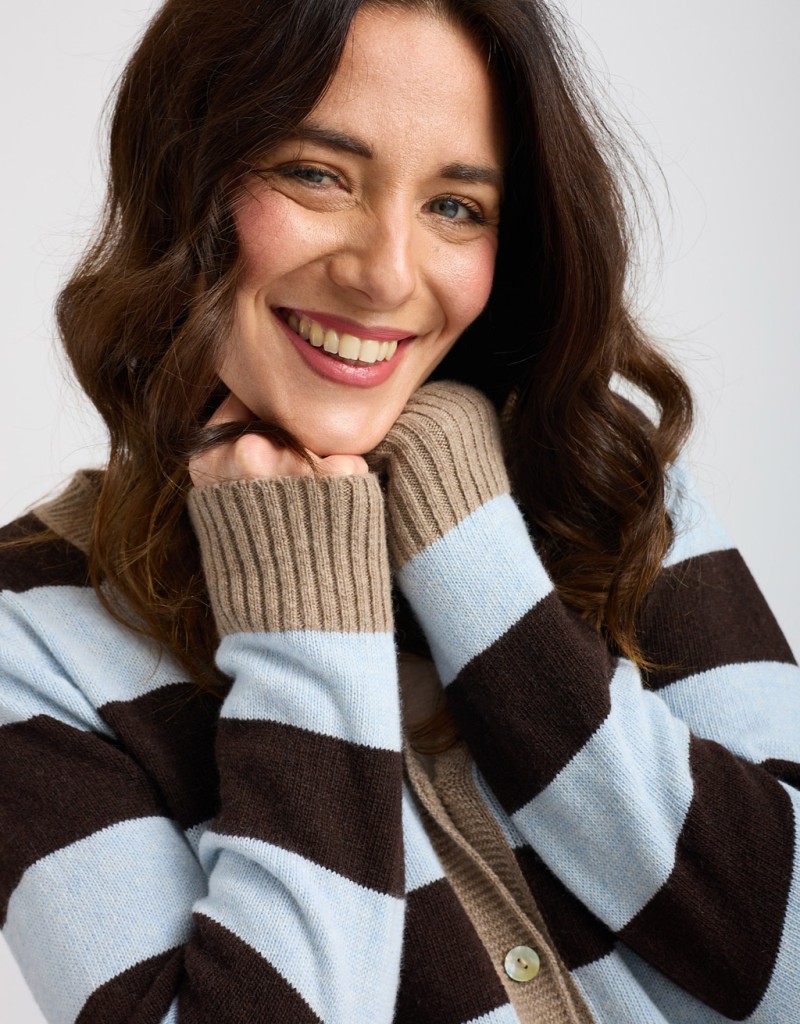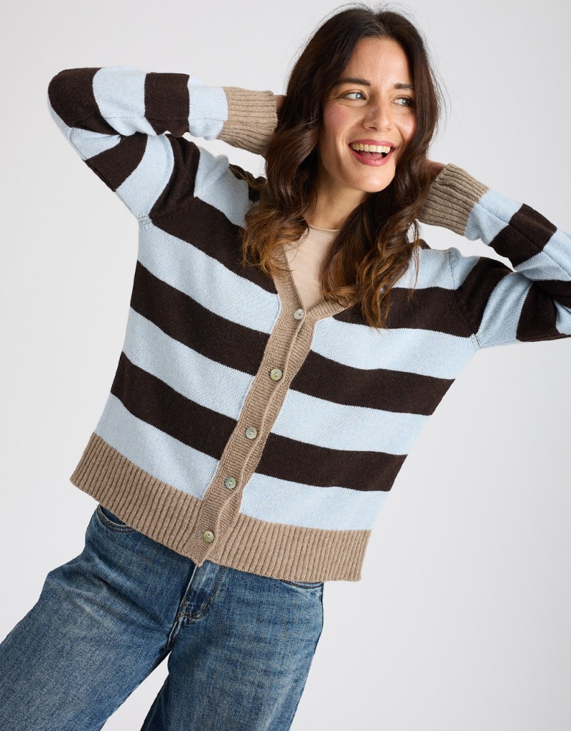 Caldo cardigan in misto lana e cashmere in fantasia a righe.
