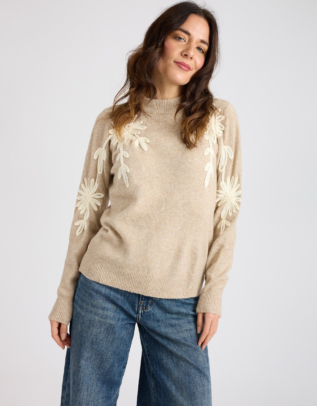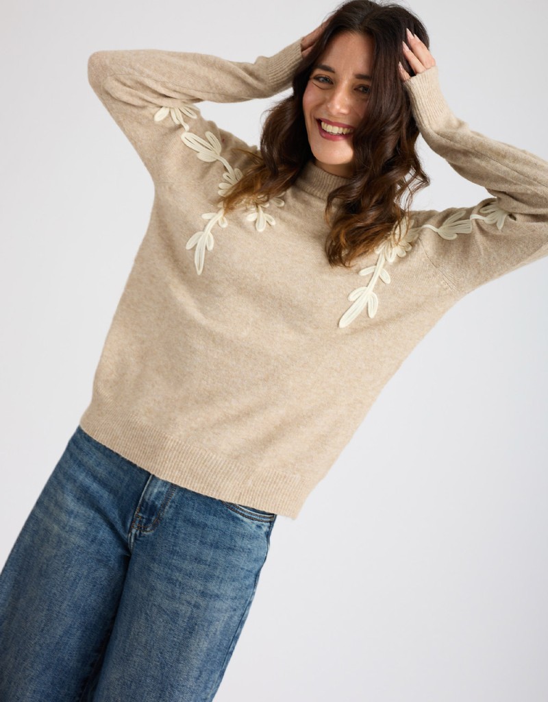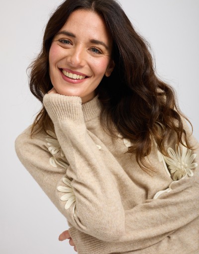 (Ogni 1,00 € speso = 1 punto)Caldo maglione in misto lana con scollatura a giro ed eleganti ricami floreali davanti e sulle maniche.