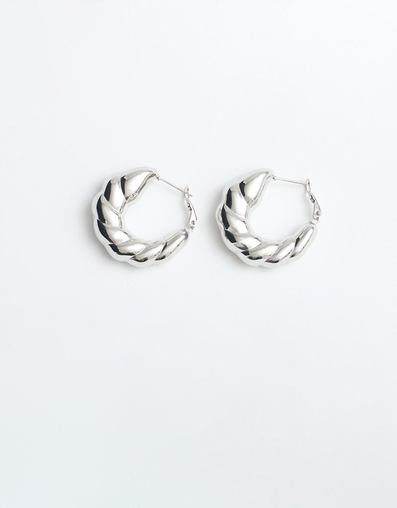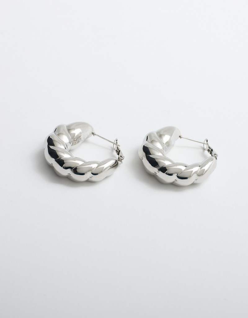 (Ogni 1,00 € speso = 1 punto)Orecchini a cerchio dal design audace e voluminoso, caratterizzato da un forma intrecciata, presentano una finitura liscia e lucida che cattura la luce, offrendo un look moderno e di tendenza