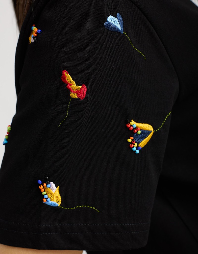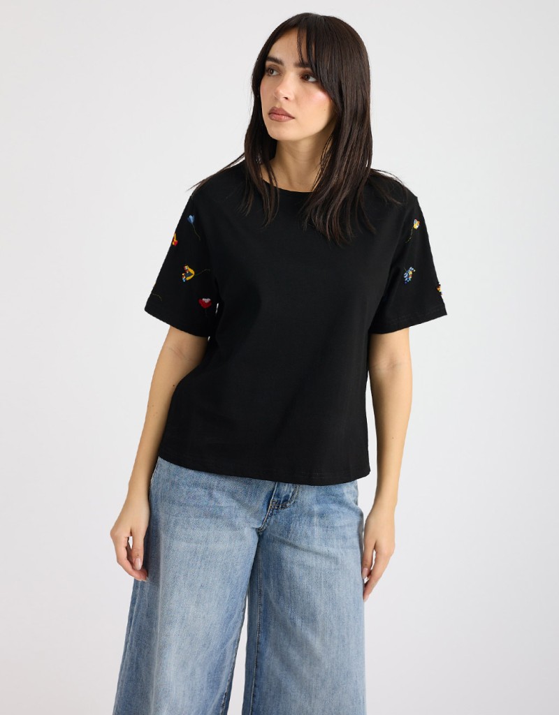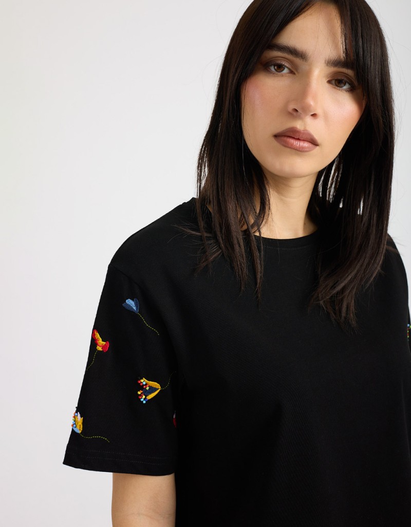 T-shirt Ricamo Ed Applicazioni Maniche