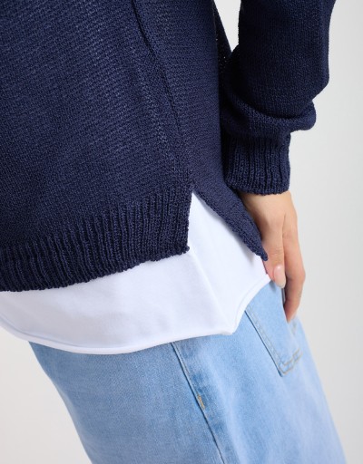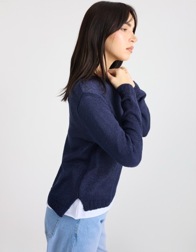 Essenziale e versatile, questo maglioncino basico in tinta unita è perfetto per completare i look primaverili. La scollatura a giro, l’orlo leggermente più lungo dietro e gli spacchetti laterali creano una linea morbida e moderna, ideale da indossare da sola o a strati.
