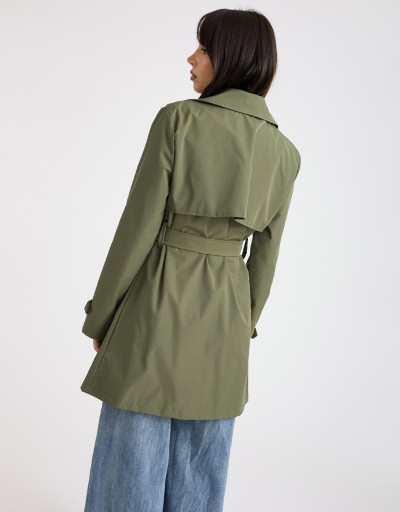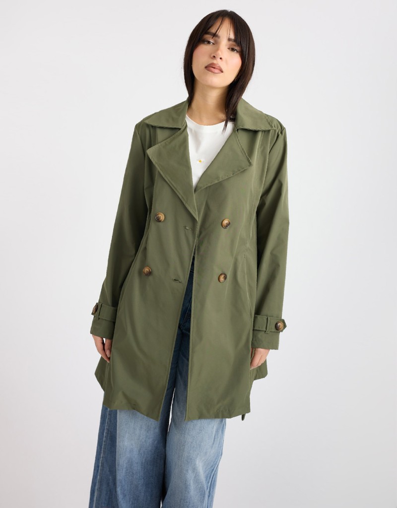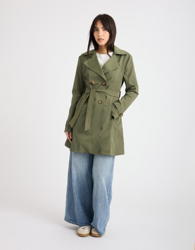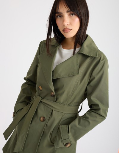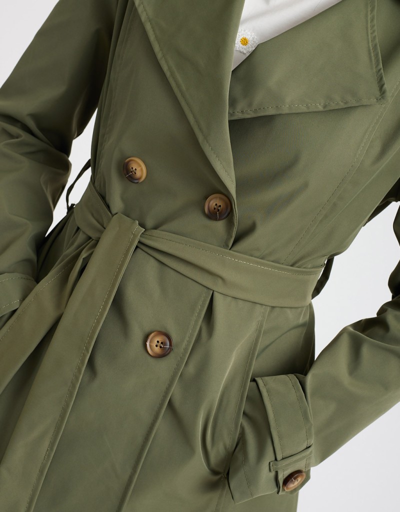 Classico e sofisticato, questo trench midi è perfetto per le giornate primaverili. Il collo a revers e la chiusura frontale a doppio petto creano una linea elegante, mentre la fusciacca in vita valorizza la silhouette. Le tasche frontali nascoste completano il design pulito e raffinato.