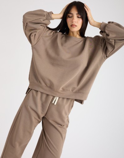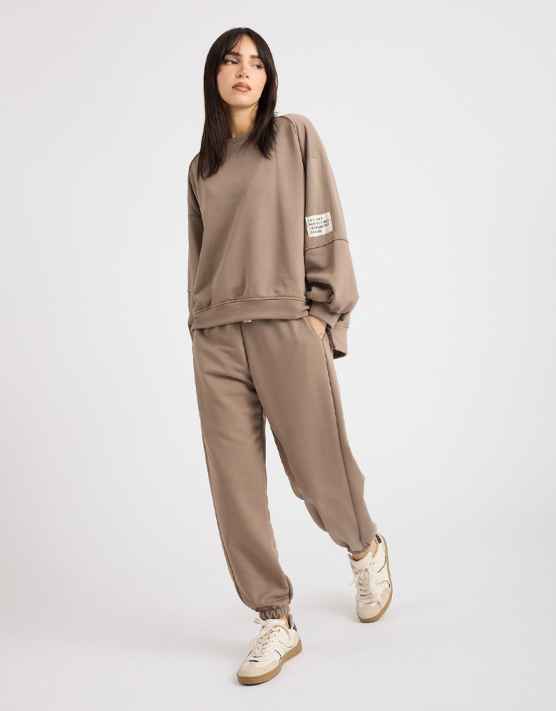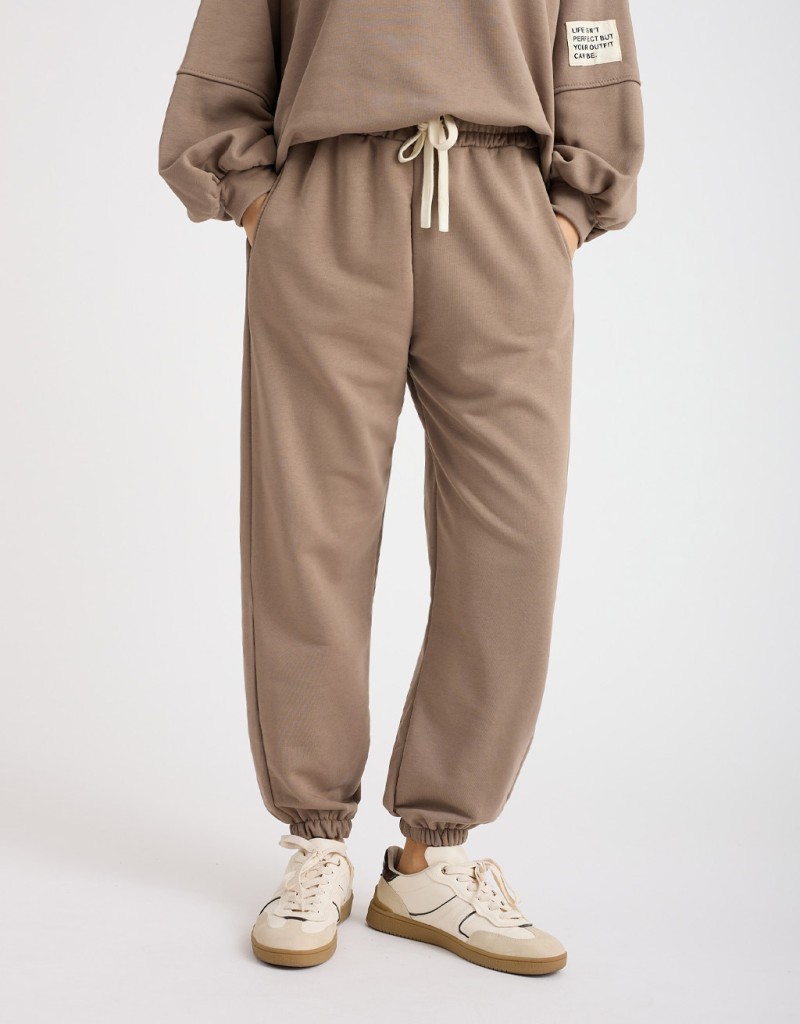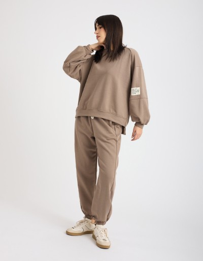 Pratico e contemporaneo, questo completo in felpa unisce comfort e stile quotidiano. La maglia dal taglio morbido, con scollatura a giro e orlo leggermente più lungo dietro, è arricchita da spacchetti sui lati. Il pantalone con elastico e laccio in vita, tasche laterali e fondo a elastico garantisce una vestibilità perfetta e libertà di movimento.