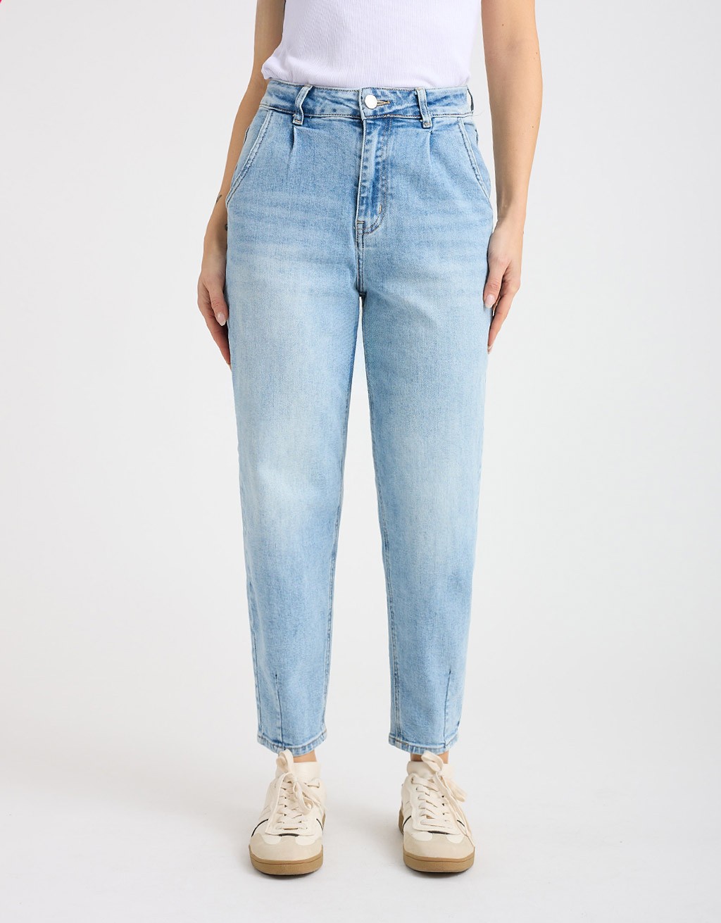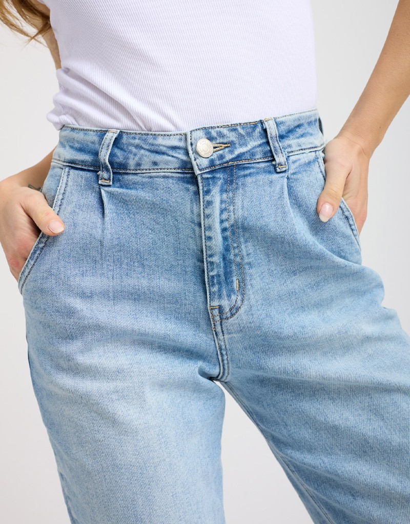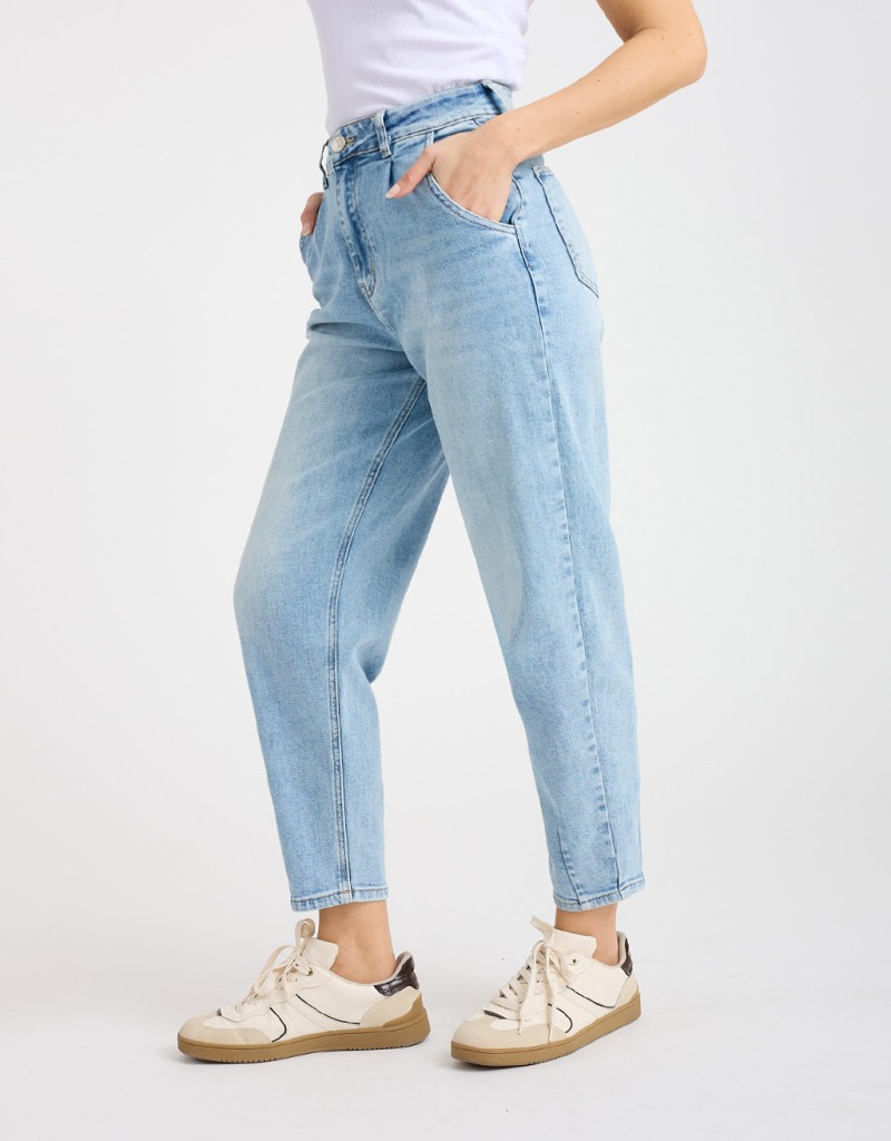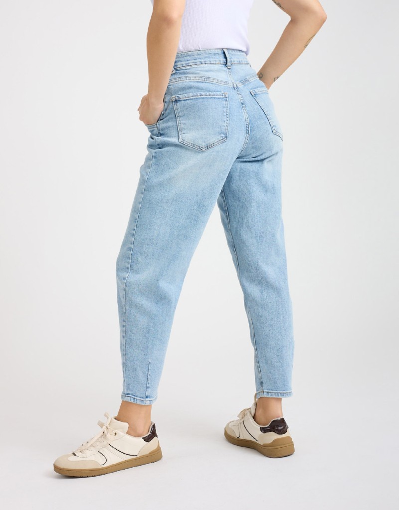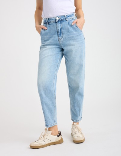 Jeans mom fit cropped dal mood contemporaneo, perfetto per dare carattere ai look di stagione. Le pinces frontali aggiungono struttura e valorizzano la linea, mentre la lunghezza alla caviglia alleggerisce la silhouette. Confortevole e versatile, è il denim ideale per outfit casual curati, dal giorno al tempo libero.