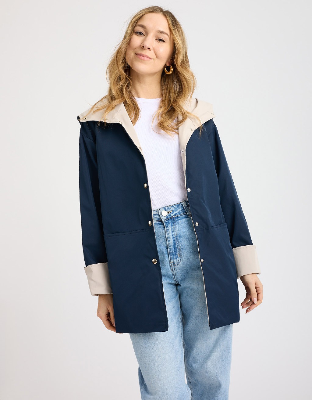 Giubbotto perfetto per le mezze stagioni, dal design pratico e moderno. Il cappuccio, la fodera interna e la chiusura frontale con bottoni a pressione garantiscono comfort e protezione, mentre le tasche frontali aggiungono funzionalità. L’interno a contrasto dona un dettaglio di stile originale, rendendo il capo versatile e facile da abbinare a look casual o urbani.