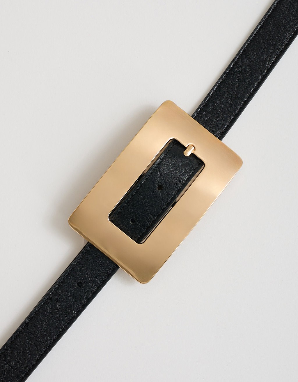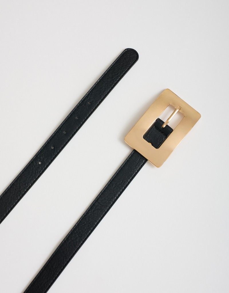 cintura fina dal design minimalista, impreziosita da una grande fibbia rettangolare che diventa il dettaglio distintivo del tuo look
