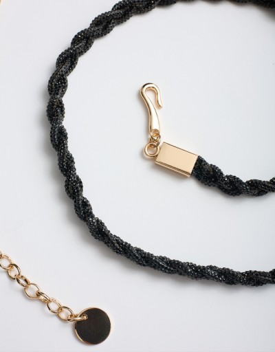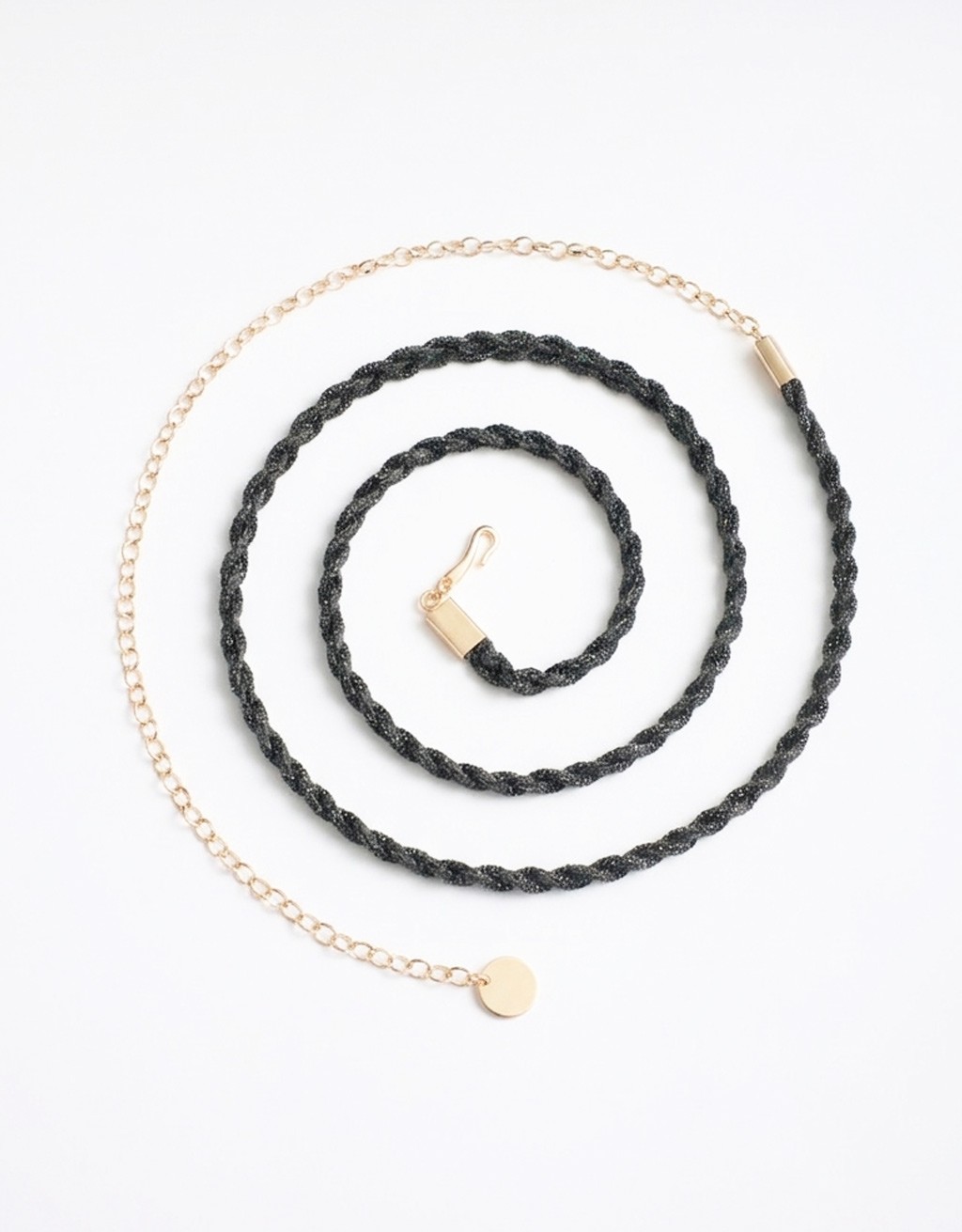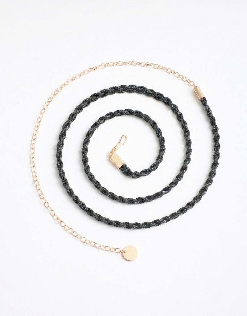 Un dettaglio luminoso che fa la differenza: la cintura fina intrecciata in lurex è l’accessorio perfetto per valorizzare il punto vita con un tocco glam. Leggera e versatile, si adatta facilmente a diversi look, donando luce e movimento grazie alla texture intrecciata e alla chiusura con catena.