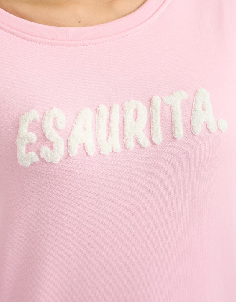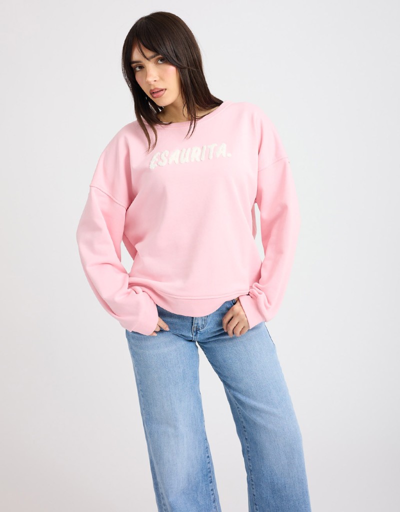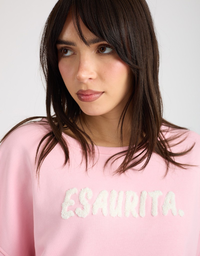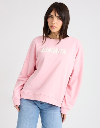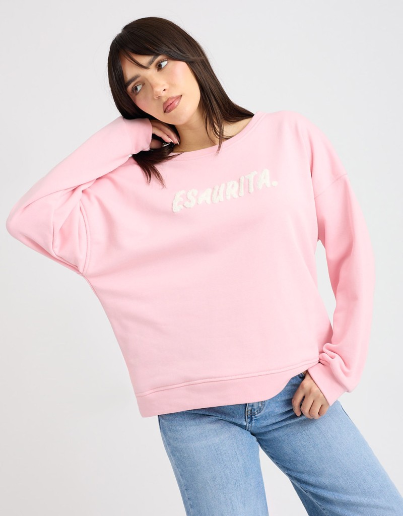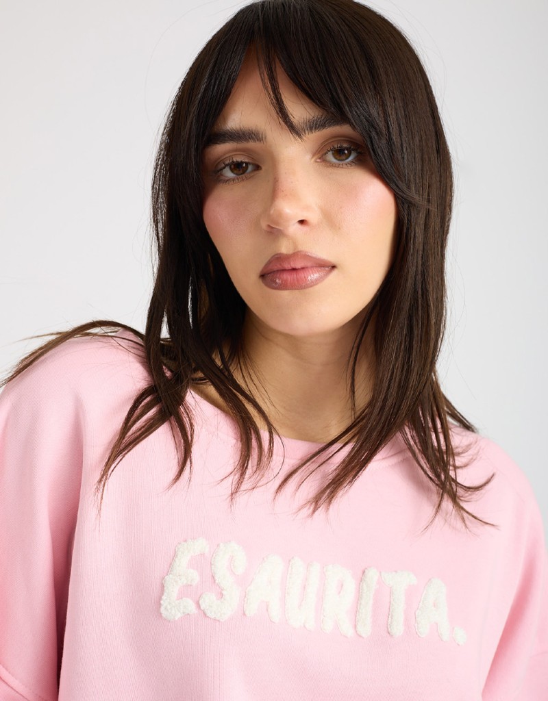 Felpa dalla linea morbida e confortevole, modello basico a girocollo e manica lunga, impreziosita dalla scritta “esaurita” cucita sul davanti. Ideale per look casual ma curati, aggiunge un tocco trendy anche agli outfit più semplici, perfetta per le giornate primaverili più fresche o le serate estive più ventilate.