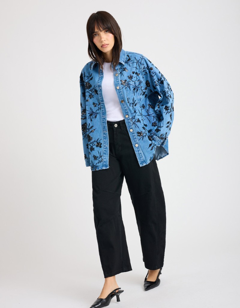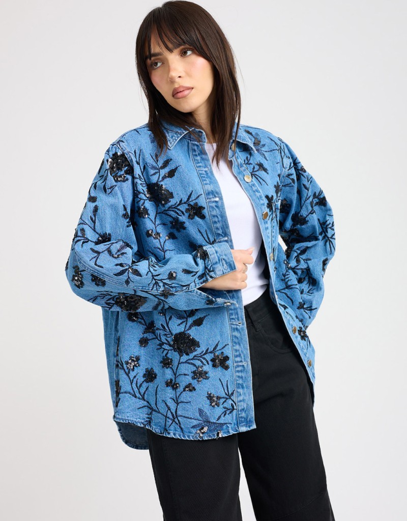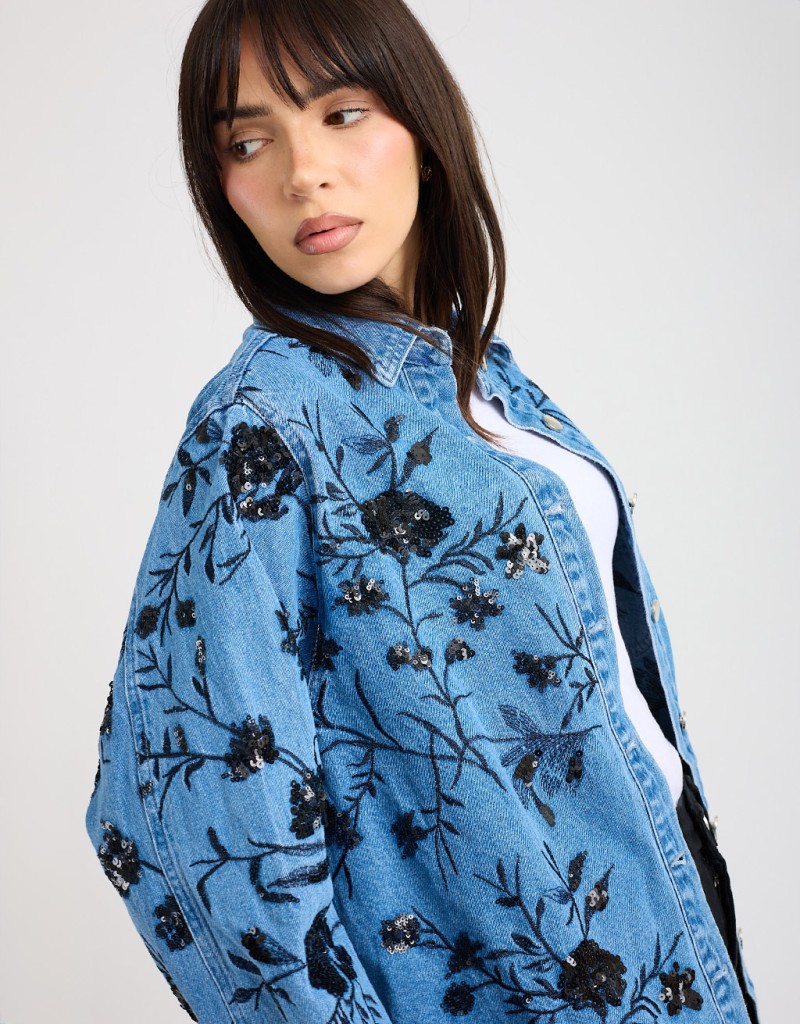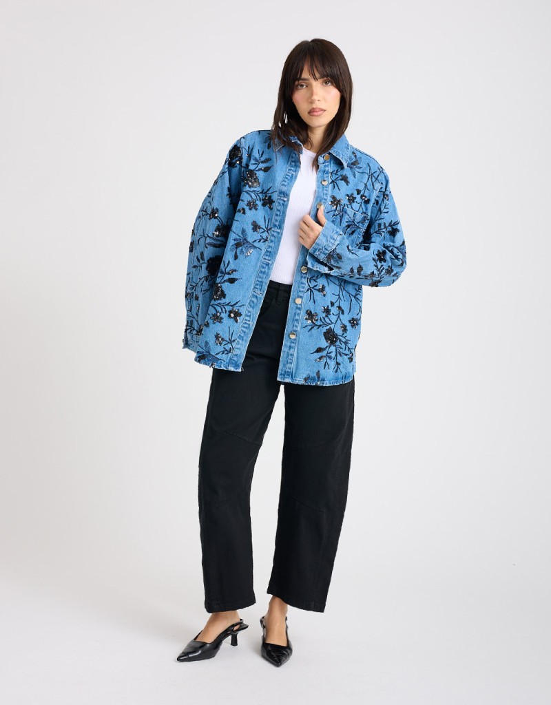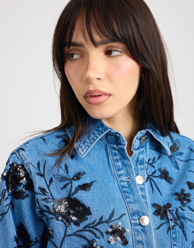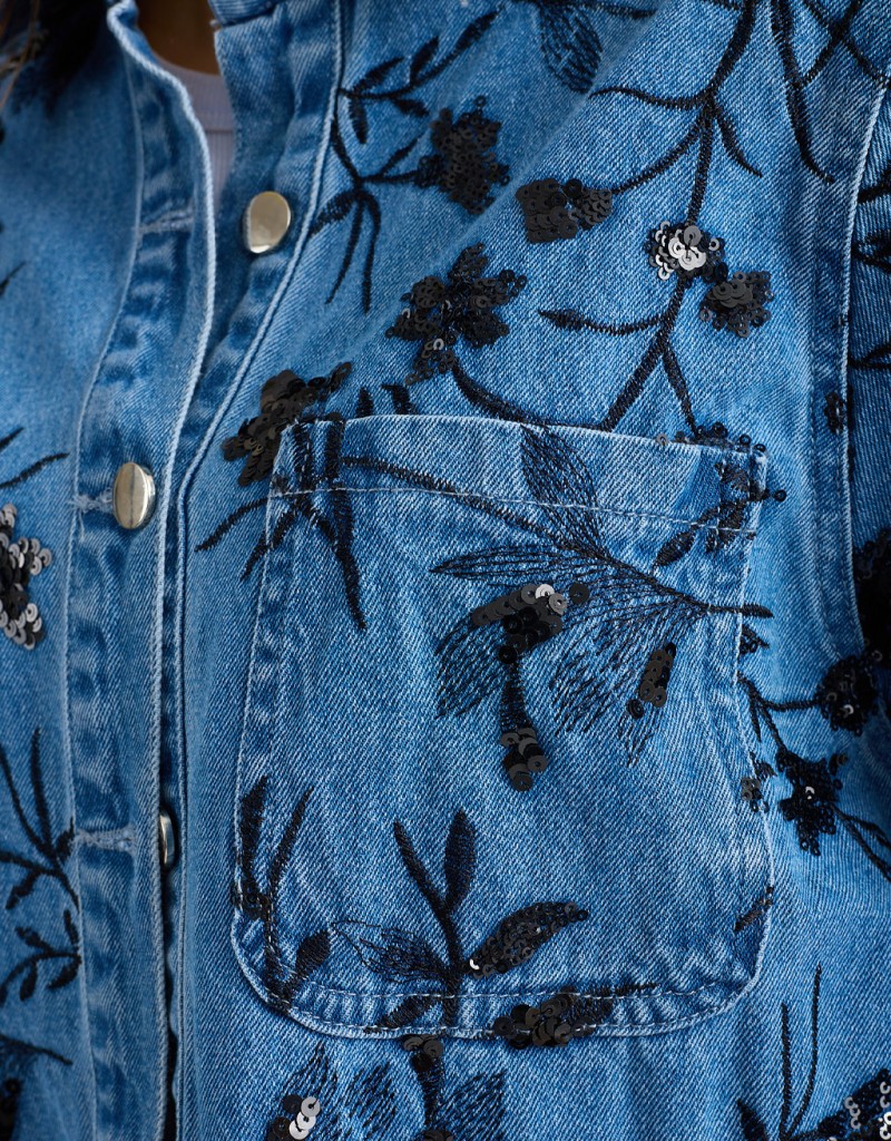 Giacca Camicia Jeans Ricami Paillettes