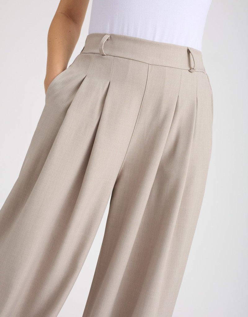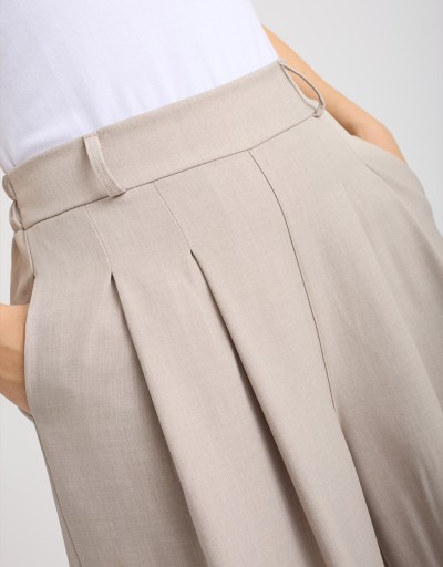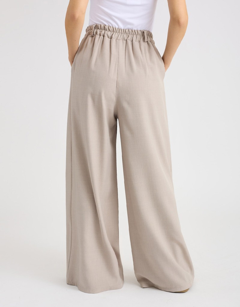 Pantagonna in tessuto fresco e leggero, dal taglio ampio e fluido che avvolge la silhouette con eleganza. L’elastico in vita garantisce comfort e adattabilità, mentre le pinces frontali e le tasche laterali nascoste aggiungono dettagli raffinati e pratici. Perfetta per le giornate primaverili o per un look casual-chic senza rinunciare alla comodità.