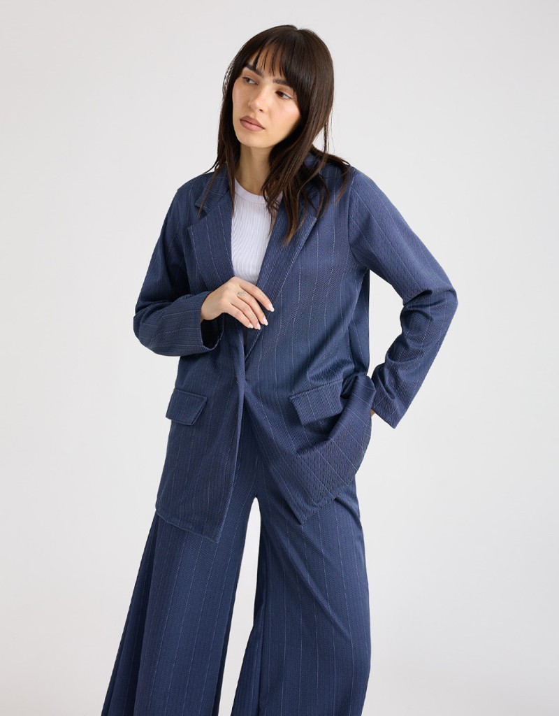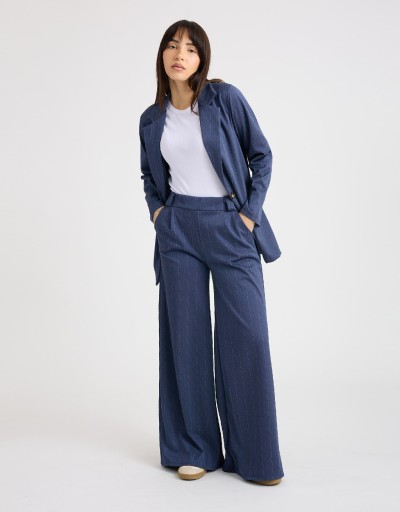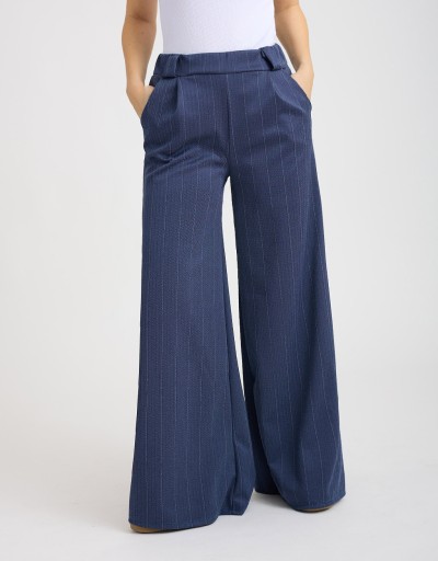 Pantalone Palazzo Gessato Effetto Denim