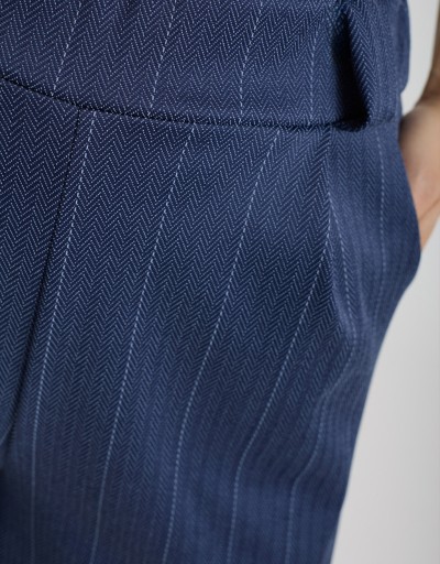 Si abbina al gilet spinato cod. 31222 o al blazer spinato cod. 31221 per un look coordinato e sofisticato. Per il tempo libero, abbina una t-shirt basic e sneakers bianche: fresco, moderno e versatile.