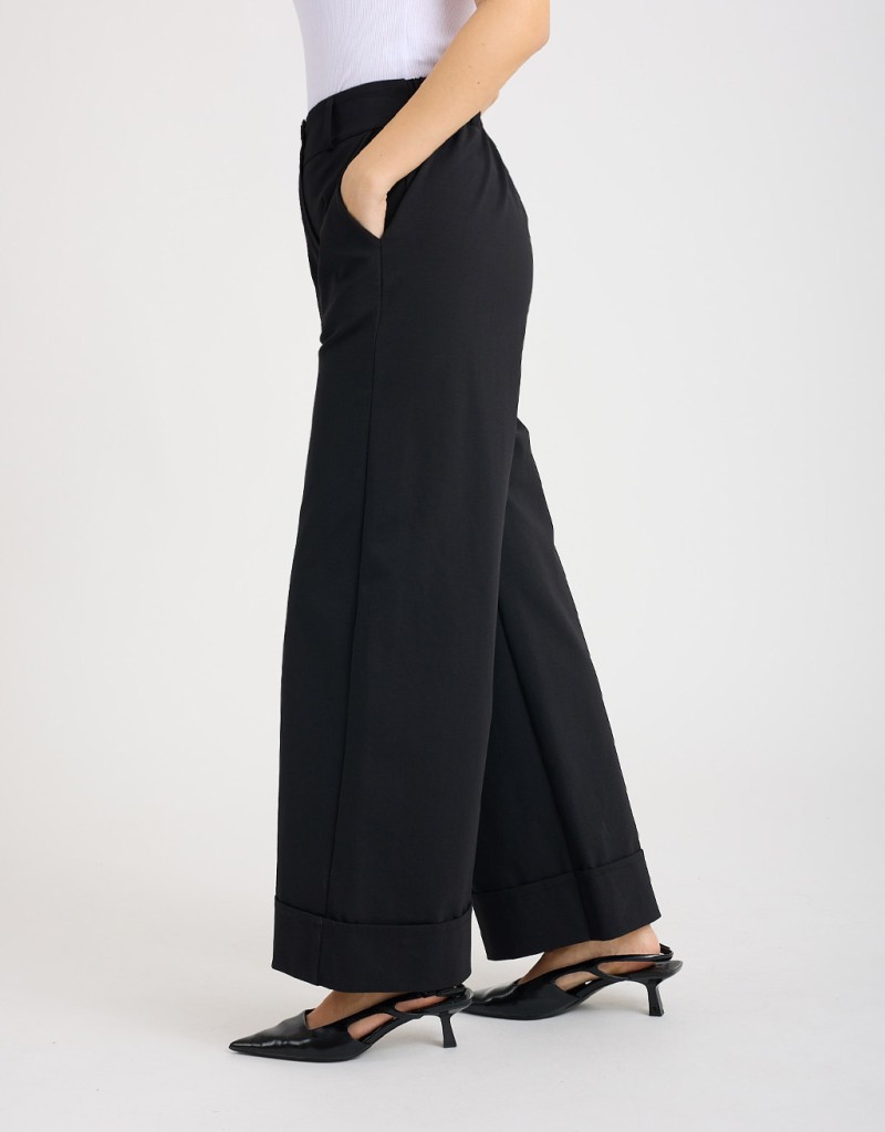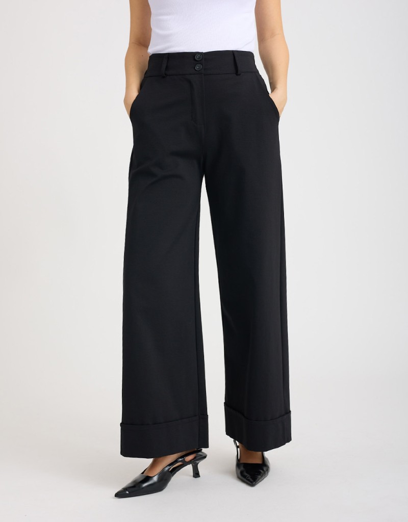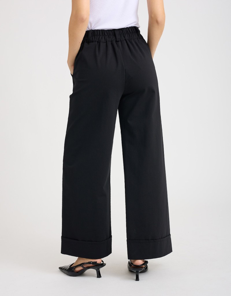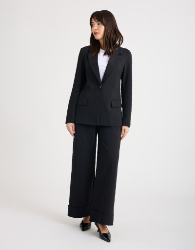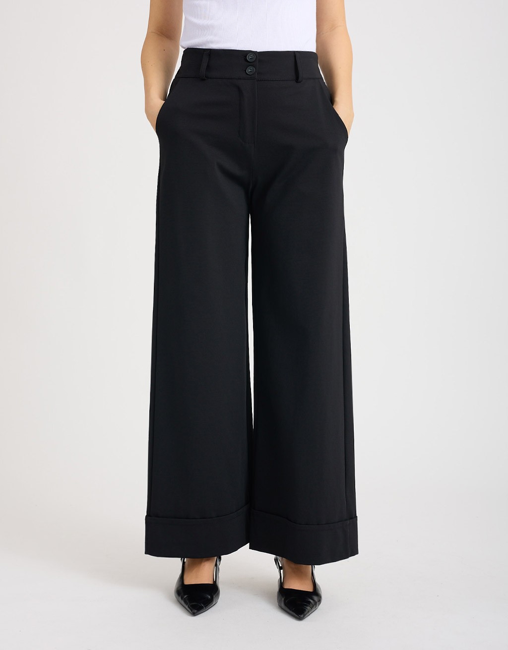 Pantalone in punto Milano dal tessuto fresco e leggero, parte della nostra linea comfy pensata per un’eleganza rilassata. La vita medio-alta con elastico sul retro e chiusura frontale garantisce una vestibilità adattabile e confortevole. Il design è valorizzato dall’ampio risvolto sul fondo, che aggiunge un tocco moderno e curato.
