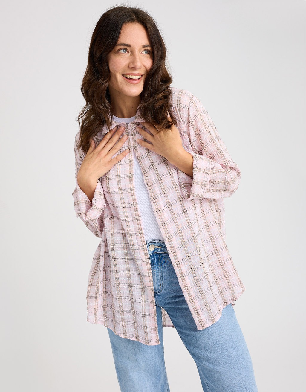 Casual e moderna, questa camicia maxi in tessuto leggero è un capo versatile e dallo stile contemporaneo. Il modello effetto stroppicciato dona carattere e movimento, mentre la fantasia a quadri aggiunge un tocco fresco. Il fondo leggermente più lungo dietro e le maniche lunghe garantiscono comfort e un look rilassato ma curato.