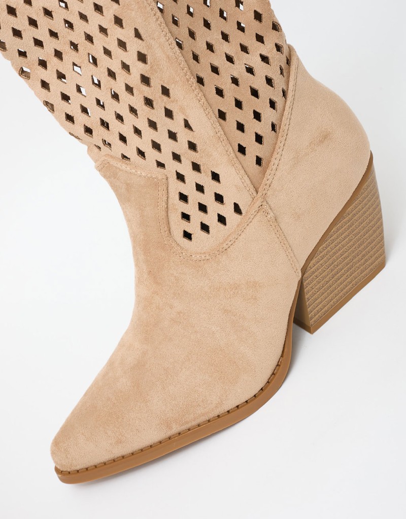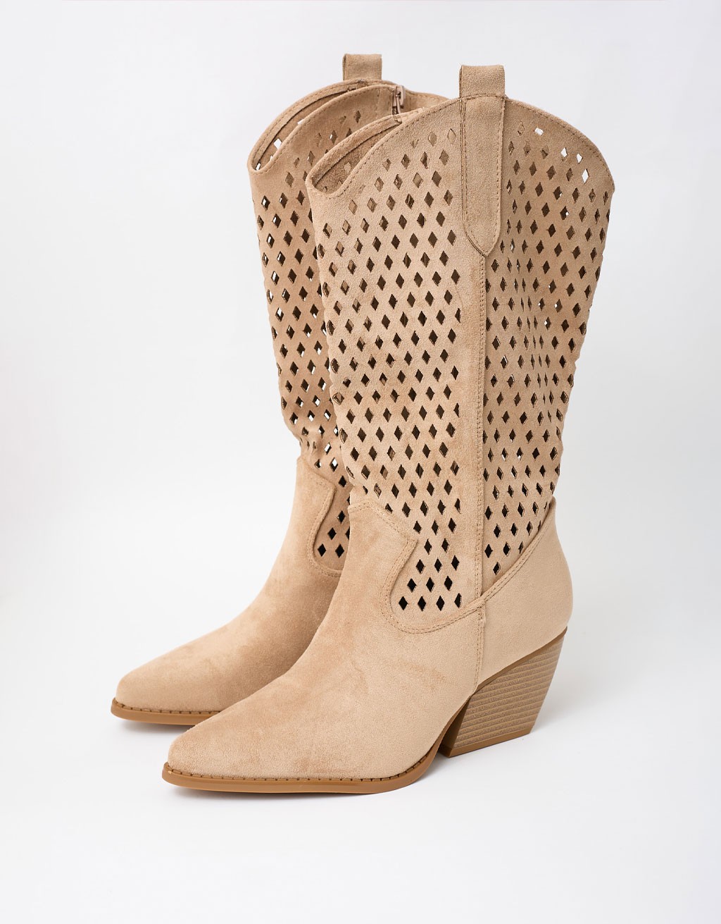 Lo stivale texano traforato è il dettaglio di stile che dà carattere a qualsiasi look. Si distingue per il raffinato motivo a piccoli rombi che crea un elegante gioco di texture. Il design western, rivisitato in chiave moderna, lo rende perfetto per accompagnare gli outfit di stagione con un tocco grintoso ma femminile. Ideale per le giornate primaverili e per dare personalità anche ai look più semplici.