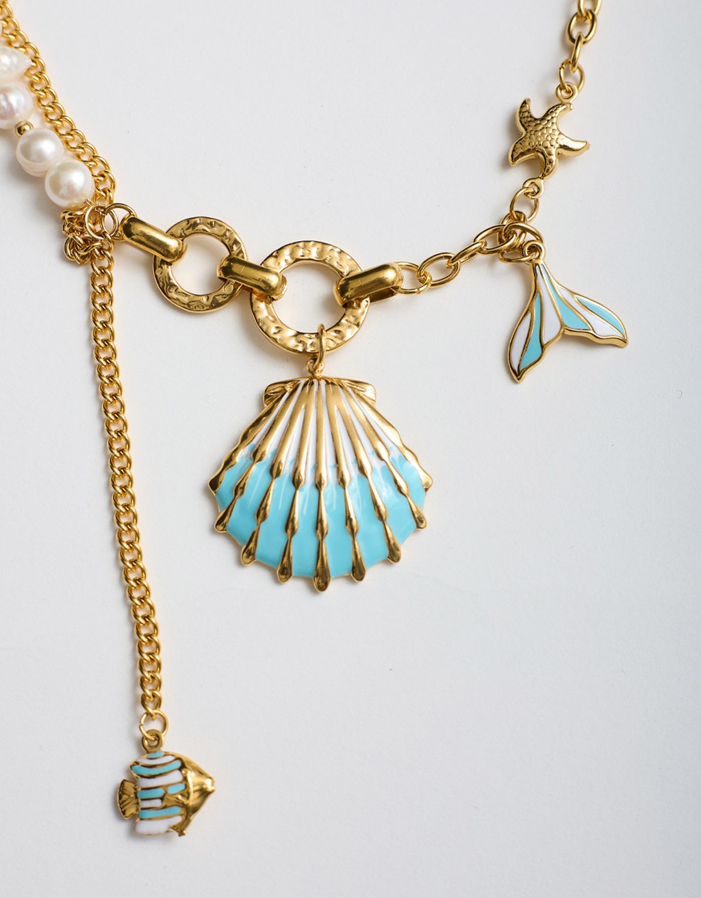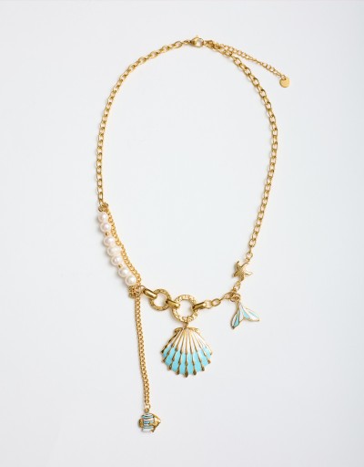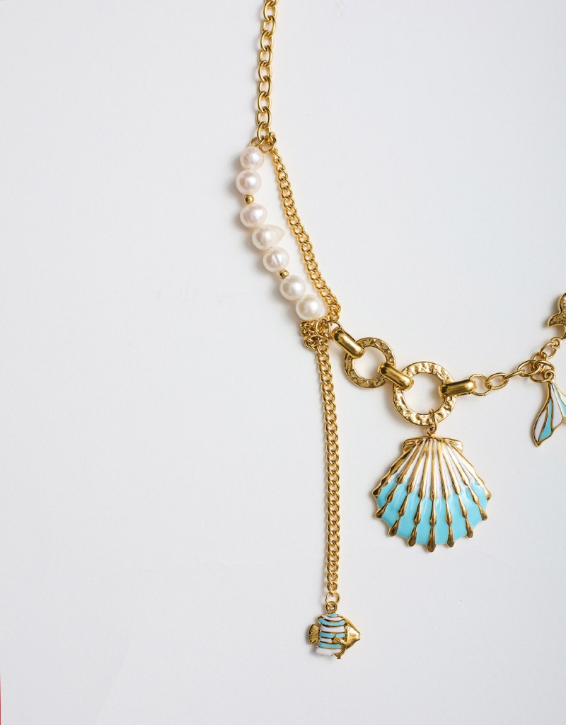 (Ogni 1,00 € speso = 1 punto)collana a catena asimmetrica con pendenti a tema marino e finiture smaltate. un'accessorio versatile dal design strutturato, ideale per un uso quotidiano o per completare look estivi