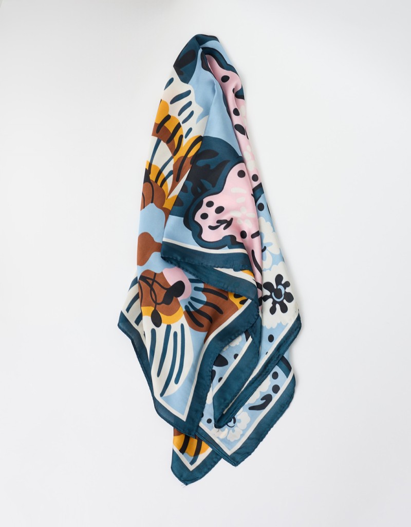 Il set è composto da tre foulard coordinati, tra cui uno a tinta unita e due in fantasia, ideali per creare abbinamenti diversi e adattarsi sia a look casual che più raffinati. Il tessuto leggero e morbido garantisce comfort durante tutta la giornata e una vestibilità fluida che permette di annodarli facilmente.