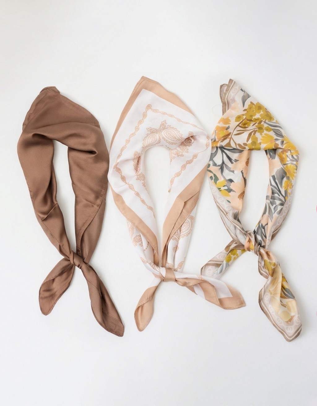 Rinnova il tuo stile con questo set di tre foulard leggeri, pensato per aggiungere un tocco di eleganza e versatilità a ogni outfit. Ogni foulard misura 70 × 70 cm, una dimensione perfetta per essere indossato in diversi modi: al collo, tra i capelli, al polso oppure annodato alla borsa.