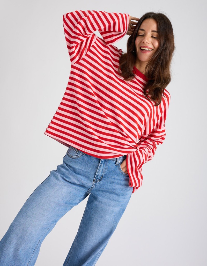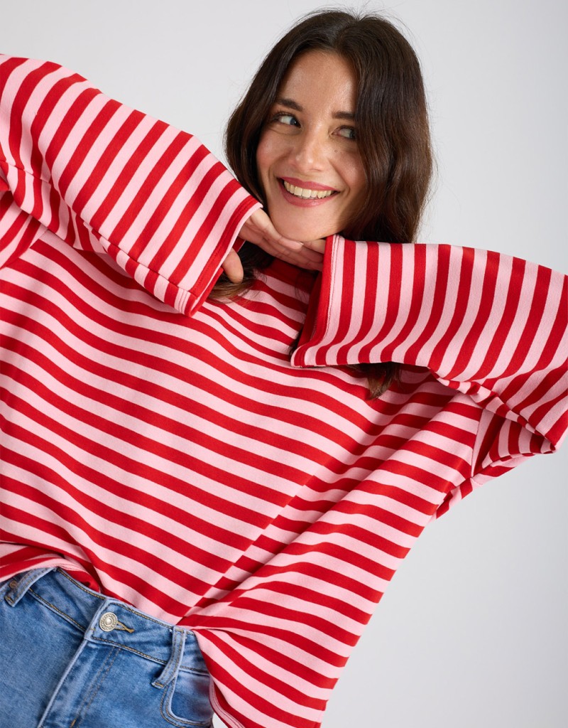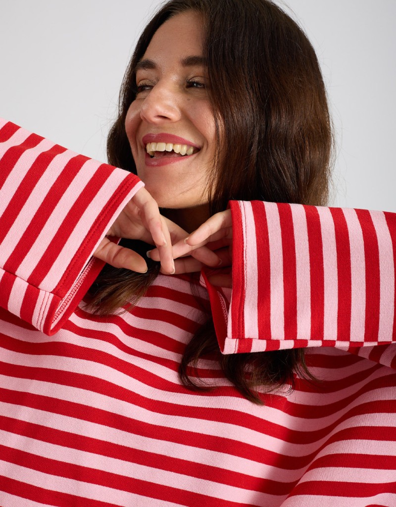 Felpa leggera in tessuto non garzato con fantasia a righe, perfetta per uno stile casual ma curato. Il modello basico e la vestibilità comoda la rendono un capo facile da indossare ogni giorno, ideale per accompagnarti nelle giornate di primavera con comfort e leggerezza.