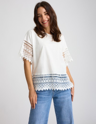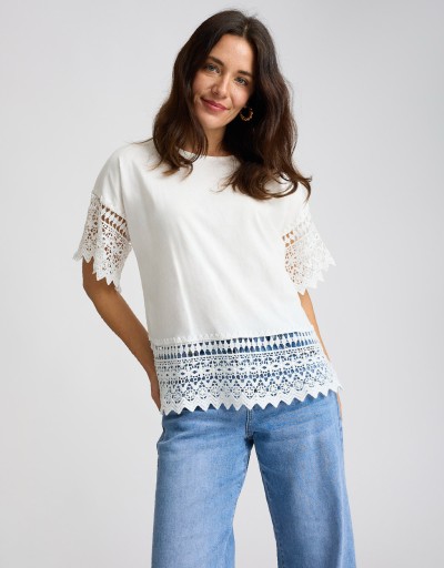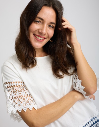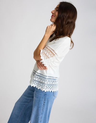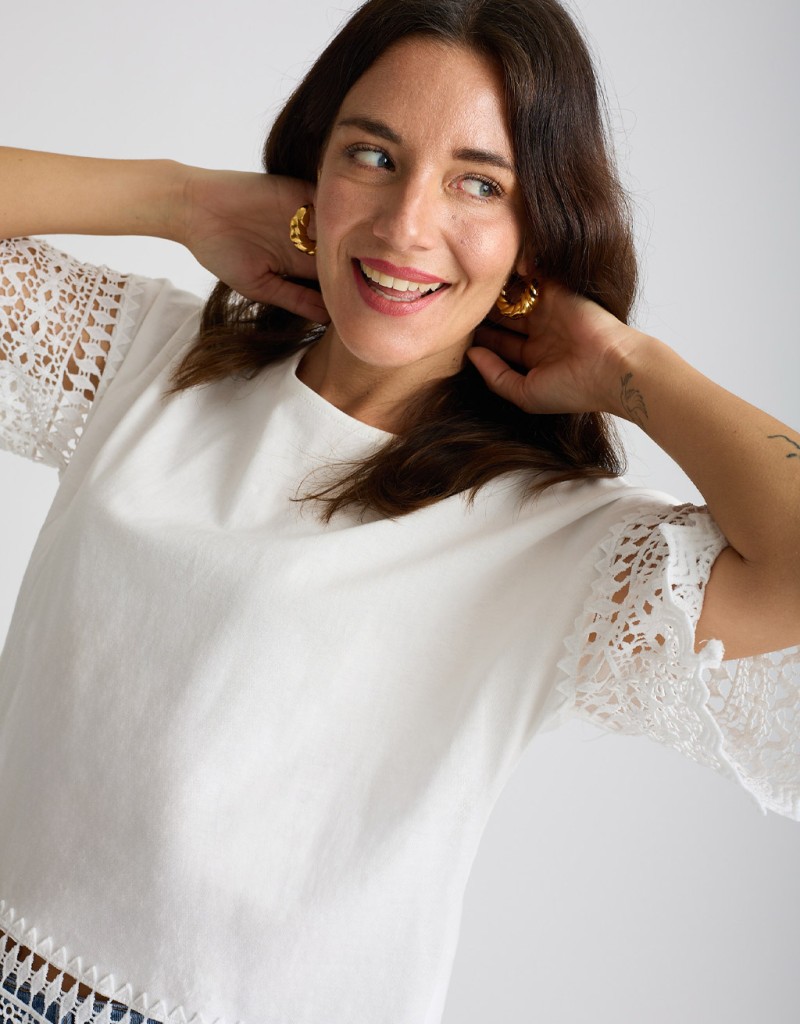 T-shirt Cotone Inserti Macramè