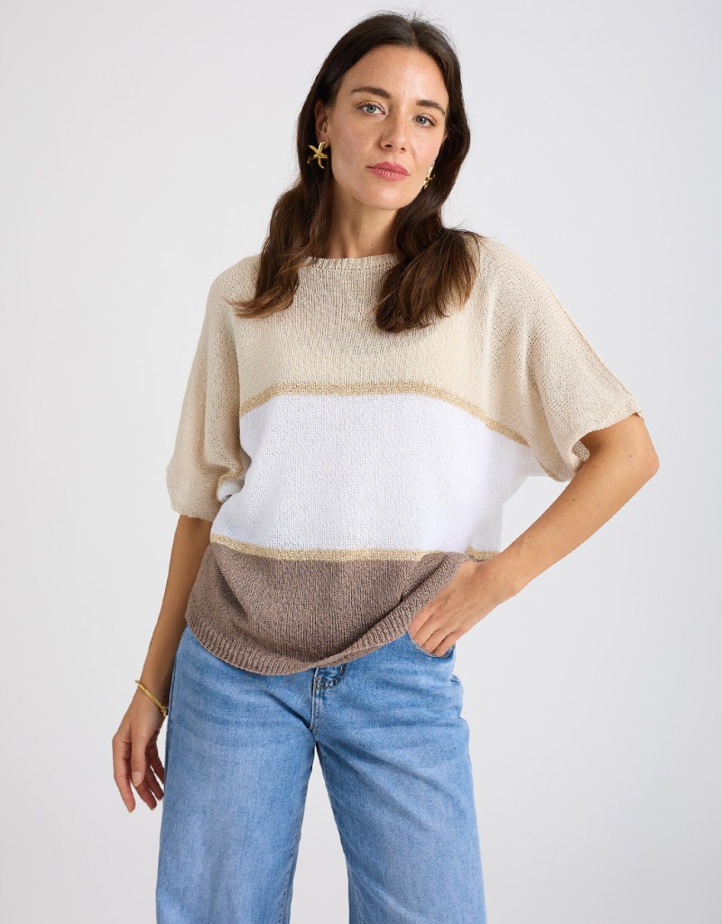 Maglietta in fresco e leggero cotone, perfetta per le giornate primaverili ed estive. Il modello basico è reso unico dagli inserti in macramè su maniche e fondo, che aggiungono un tocco artigianale e femminile senza rinunciare al comfort. Ideale da indossare da sola o sotto giacche leggere per look versatili e alla moda.
