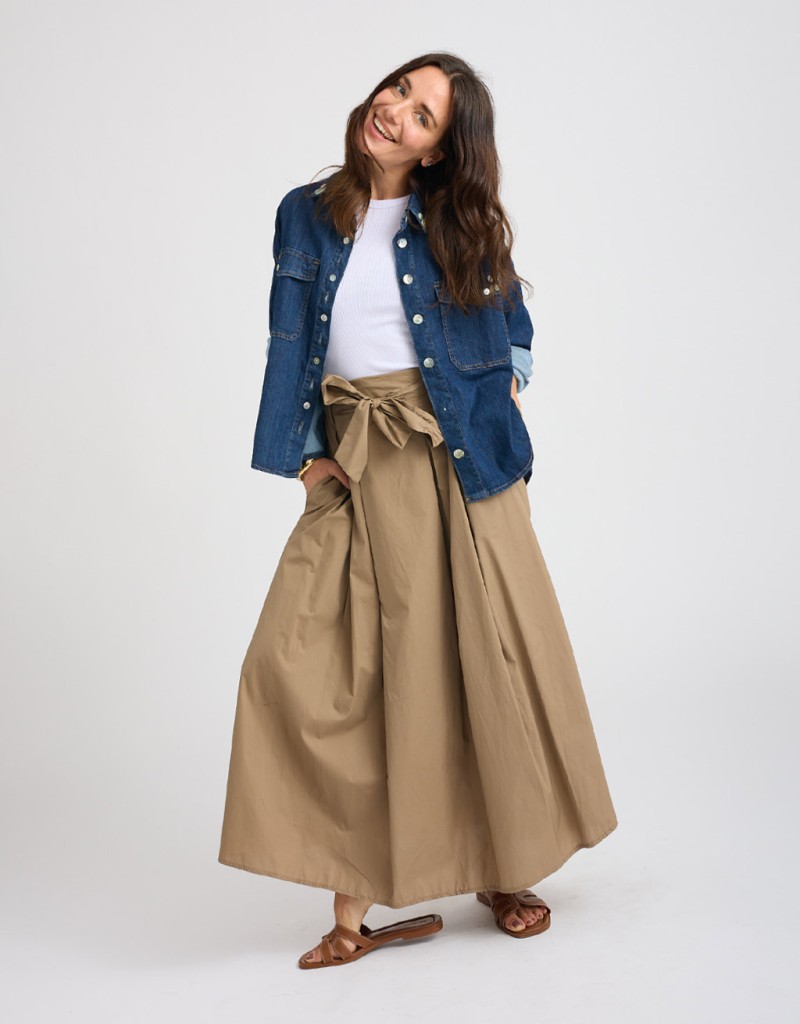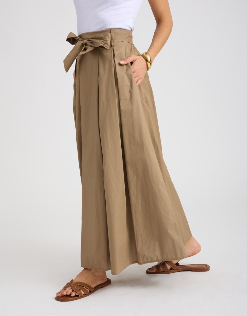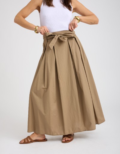 Gonna lunga in fresco e leggero cotone, dall’eleganza naturale e versatile. L’elastico e la fusciacca in vita modellano la silhouette, mentre le pinces frontali donano struttura al capo. Le tasche laterali nascoste aggiungono praticità senza compromettere la linea pulita. Ideale per le giornate primaverili o estive, da mattina a sera.