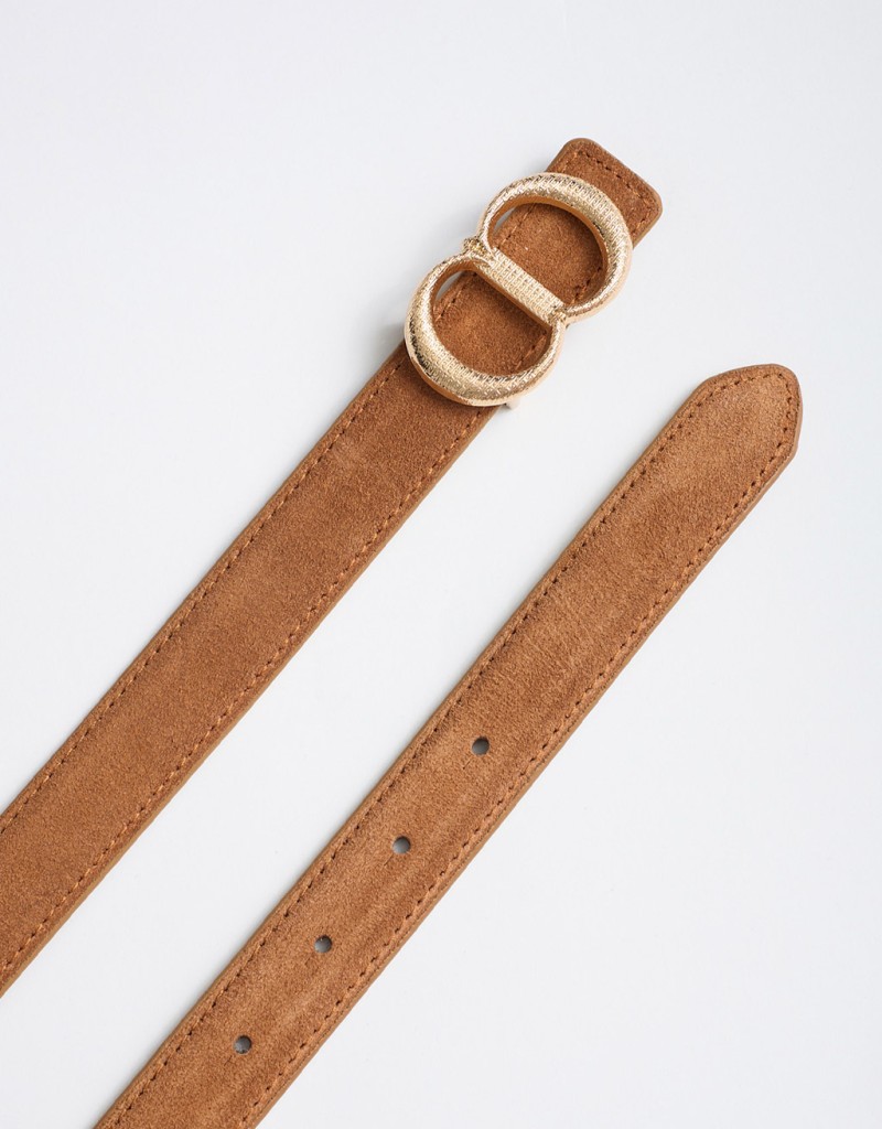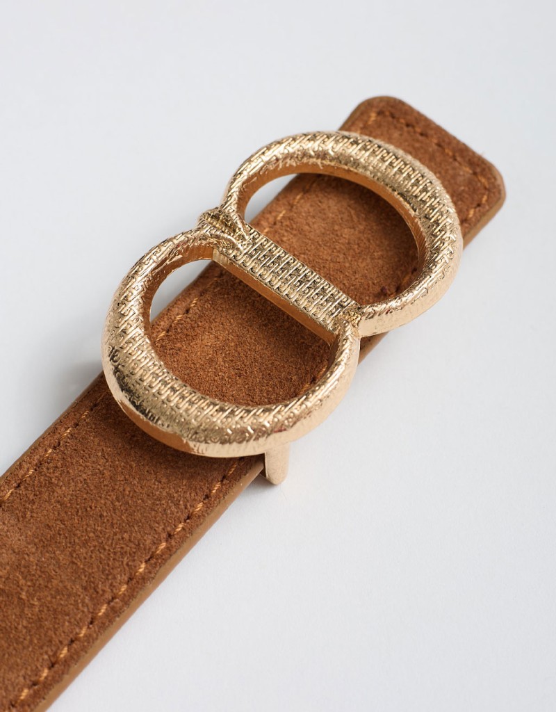 Essenziale ma con personalità, questa cintura in vera pelle è il dettaglio che completa ogni look con eleganza. La fibbia dorata dal design morbido e contemporaneo aggiunge luce e carattere, valorizzando la silhouette in modo raffinato. Perfetta per dare un twist chic anche agli outfit più minimal.