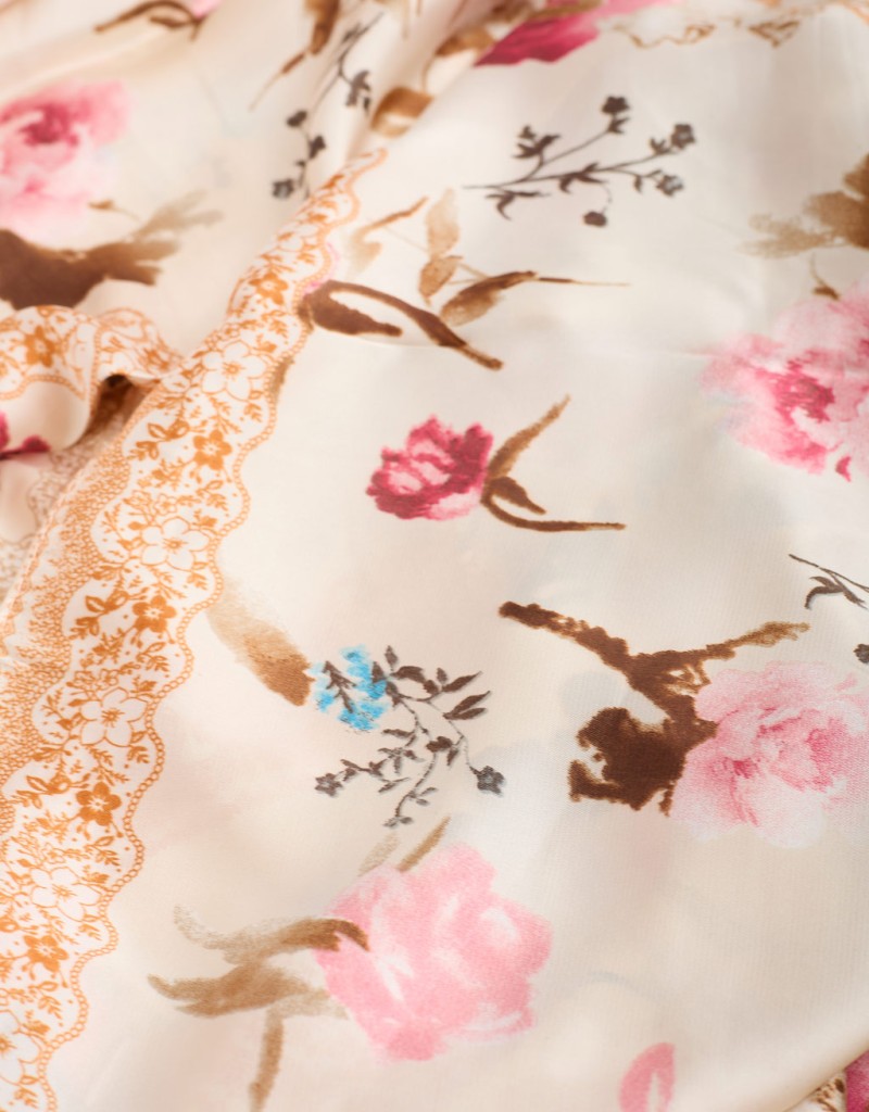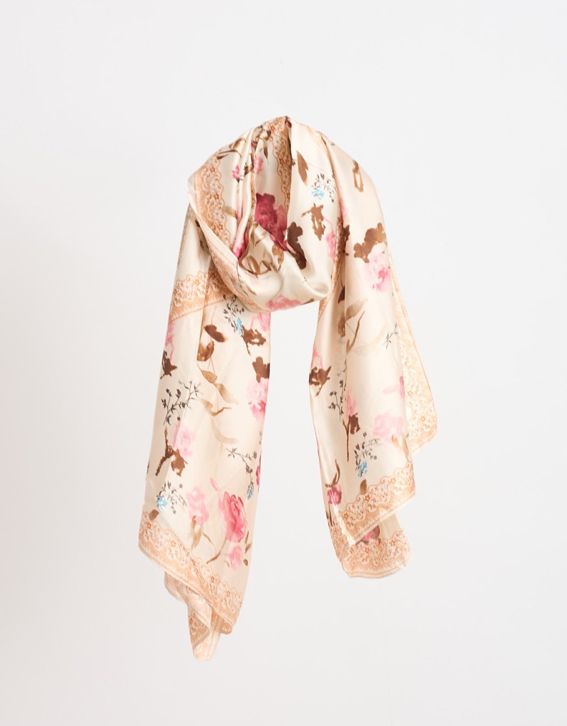 Femminile e raffinata, questa sciarpina effetto raso è l’accessorio perfetto per completare ogni look con eleganza. La fantasia floreale dona un tocco delicato e senza tempo, mentre la texture luminosa esalta ogni outfit con discreta sofisticatezza. Versatile e leggera, si indossa in mille modi, dal collo alla borsa.