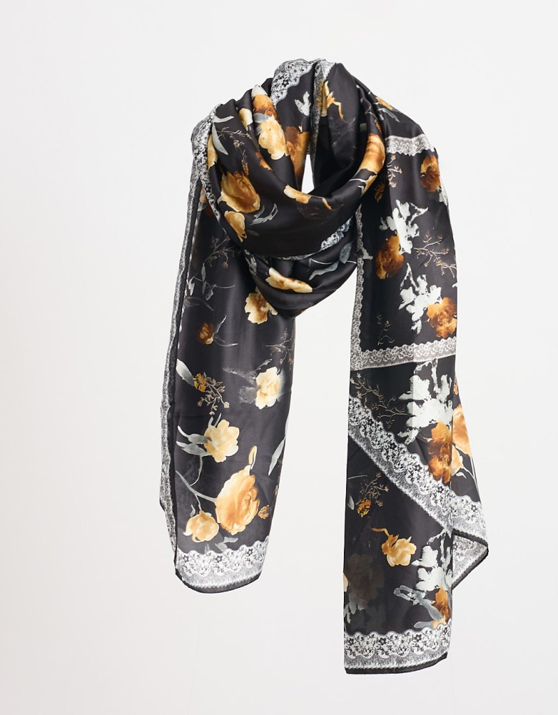 Femminile e raffinata, questa sciarpina effetto raso è l’accessorio perfetto per completare ogni look con eleganza. La fantasia floreale dona un tocco delicato e senza tempo, mentre la texture luminosa esalta ogni outfit con discreta sofisticatezza. Versatile e leggera, si indossa in mille modi, dal collo alla borsa.