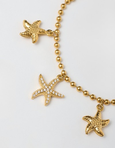 Un dettaglio che sa subito di vacanza: questo braccialetto in acciaio con pendenti a forma di stelle marine illumina il polso con leggerezza. Le stelline con strass aggiungono un tocco brillante ma discreto, perfetto per dare luce anche ai look più semplici. Ideale per la stagione calda, è l’accessorio che completa con stile ogni outfit estivo.
