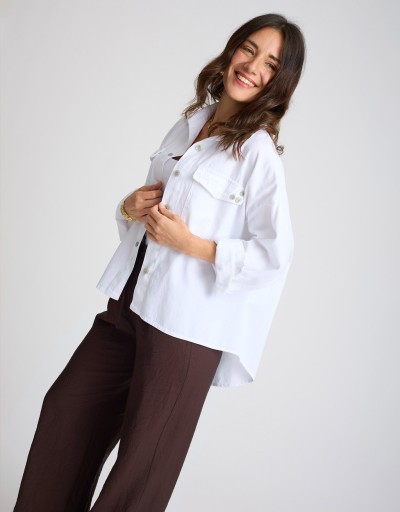 Giacca Camicia Cotone Over Bottoni Madreperla