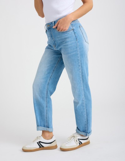 Pantalone in morbido jeans dal taglio regular, un must-have versatile per il guardaroba quotidiano. Il modello a cinque tasche con chiusura frontale con bottone e cerniera unisce praticità e stile senza tempo. La vestibilità regolare valorizza la silhouette senza costringere, rendendolo perfetto per accompagnarti con comfort durante tutta la giornata.