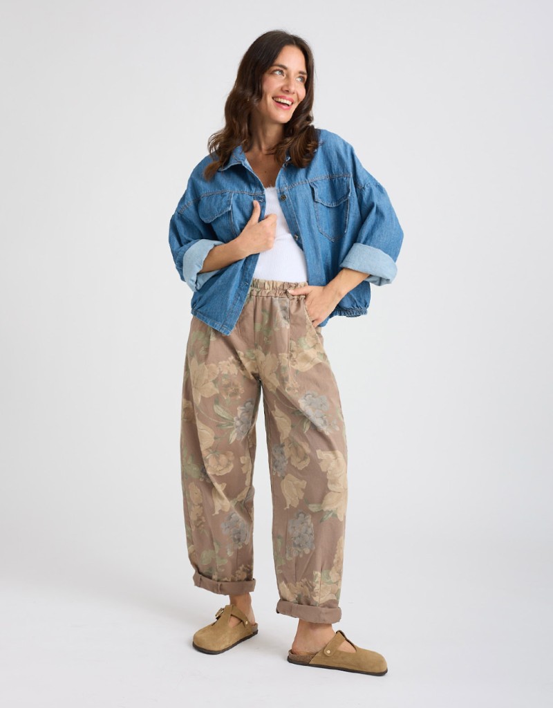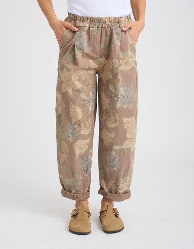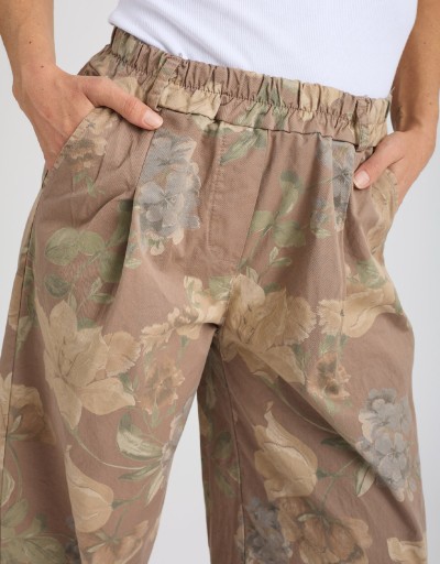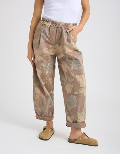 Pantalone in fresco e leggero cotone elasticizzato con fantasia floreale, perfetto per dare energia ai look di stagione. Il modello baggy, morbido e attuale, è valorizzato dalle pinces frontali che donano struttura, mentre l’elastico in vita assicura una vestibilità comoda e adattabile. Ideale per la primavera, unisce stile e praticità con un tocco trendy.