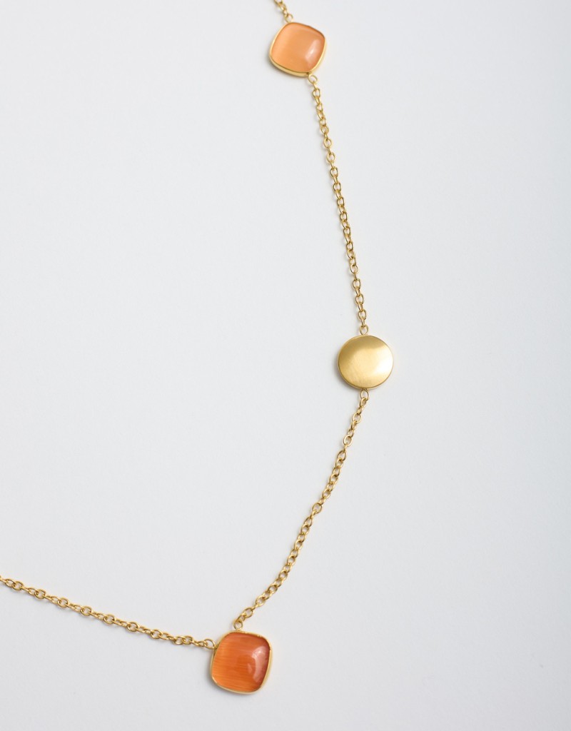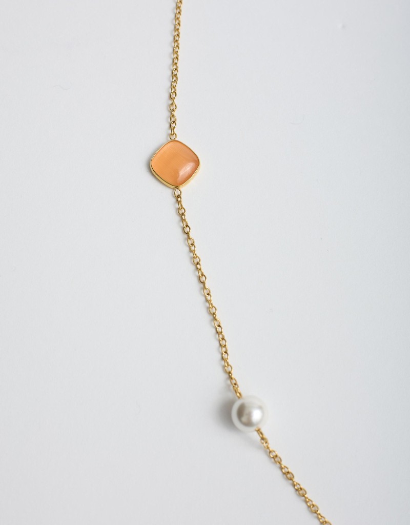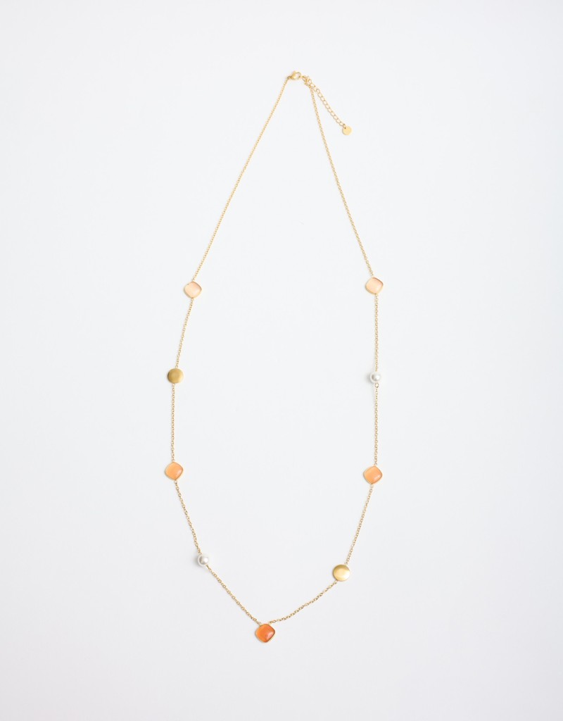 Collana lunga dal fascino delicato, impreziosita da pietre colorate in sfumature pastello e piccole perle che donano luce ed eleganza. La catena sottile color oro la rende raffinata e leggera, perfetta per completare i look primaverili con un tocco romantico e femminile. Ideale sia di giorno che per occasioni più curate.