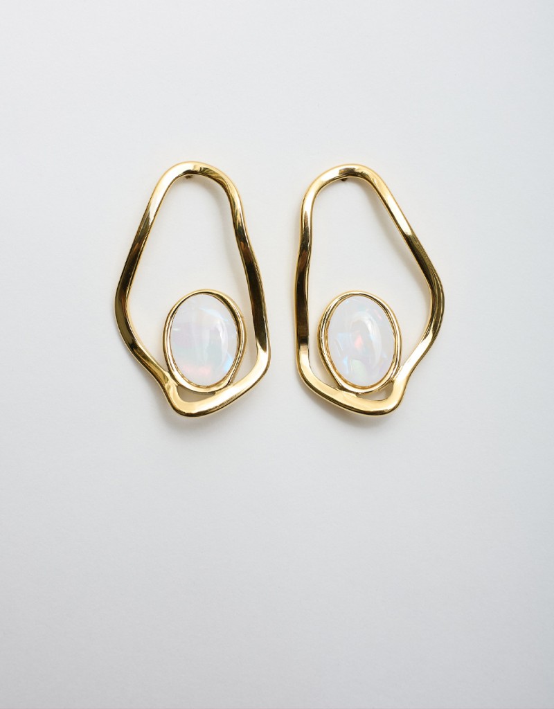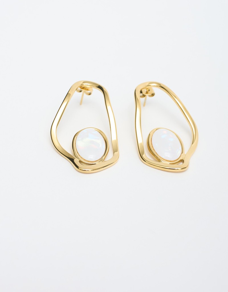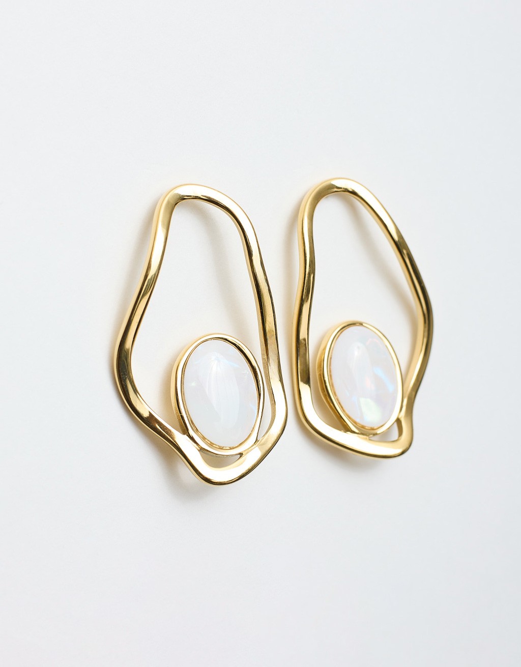 Orecchino a lobo dal design contemporaneo, con forma irregolare che dona carattere e originalità. La parte centrale smaltata crea un raffinato effetto perla, regalando luce e un tocco elegante ma moderno. Perfetto per completare i look quotidiani con stile o per aggiungere un dettaglio ricercato anche agli outfit più essenziali.