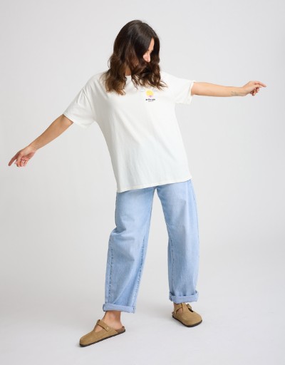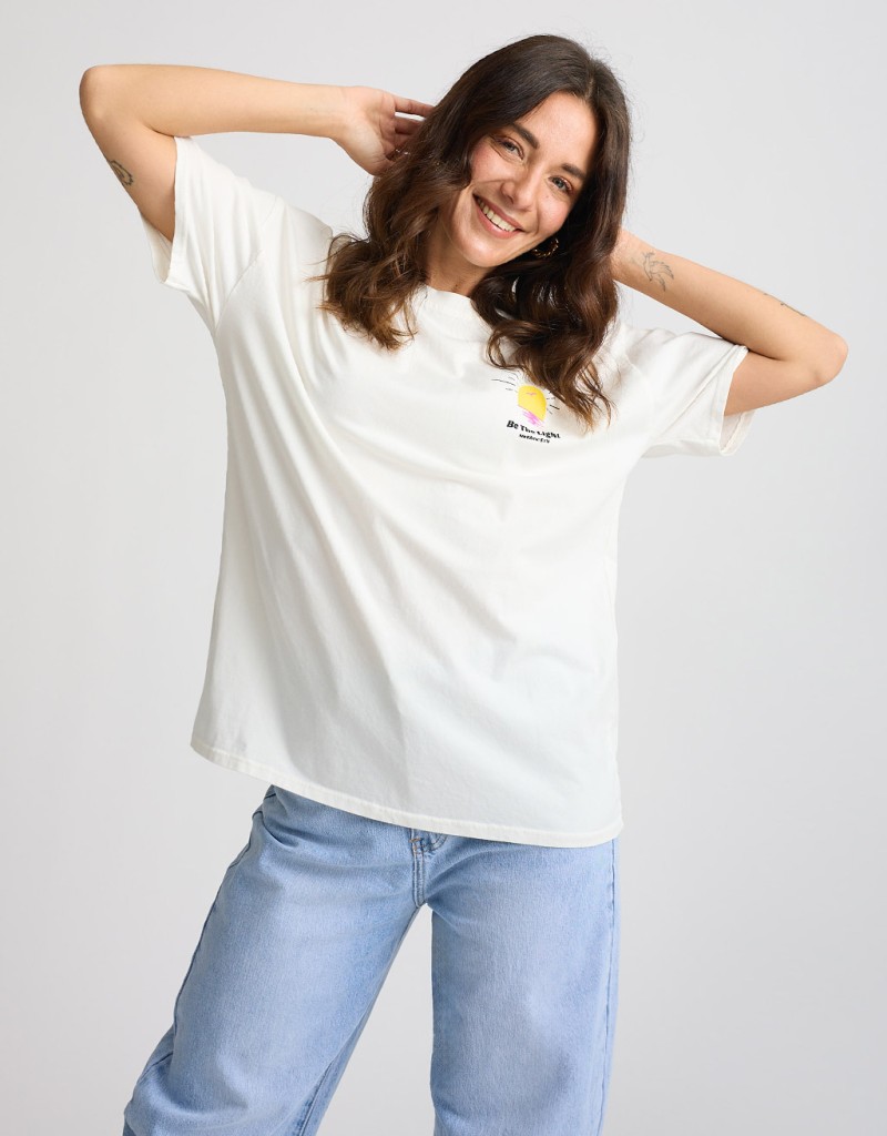 Maglietta in fresco cotone effetto tinto freddo, dal look moderno e leggermente vissuto. Il modello basico con vestibilità comoda la rende perfetta per il quotidiano, mentre la stampa sul retro aggiunge un dettaglio originale e di tendenza. Un capo easy ma ricercato, ideale per affrontare con stile le giornate più miti.