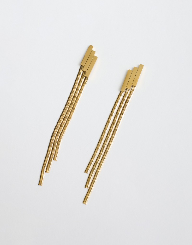 Orecchini eleganti e luminosi, caratterizzati da tre fili pendenti arricchiti da strass che catturano la luce ad ogni movimento. Un accessorio raffinato e femminile, perfetto per donare un tocco sofisticato anche ai look più essenziali. Ideali per occasioni speciali o per elevare con stile un outfit serale.