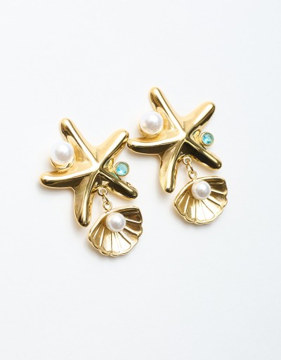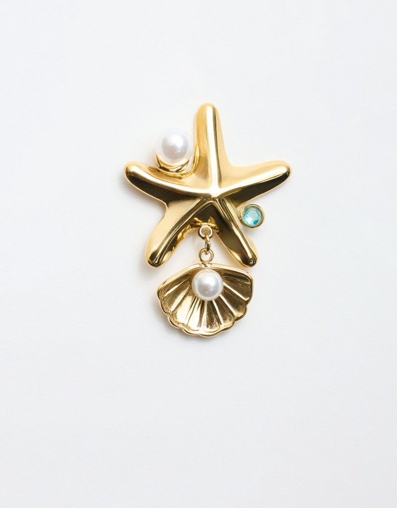 Orecchini dal fascino estivo e luminoso, con stella marina protagonista arricchita da un piccolo pendente a forma di conchiglia, perline e strass. Un mix raffinato che richiama l’atmosfera marina con un tocco chic, perfetto per illuminare il viso e completare i look con eleganza senza rinunciare alla freschezza. Ideali sia di giorno che per le serate estive.