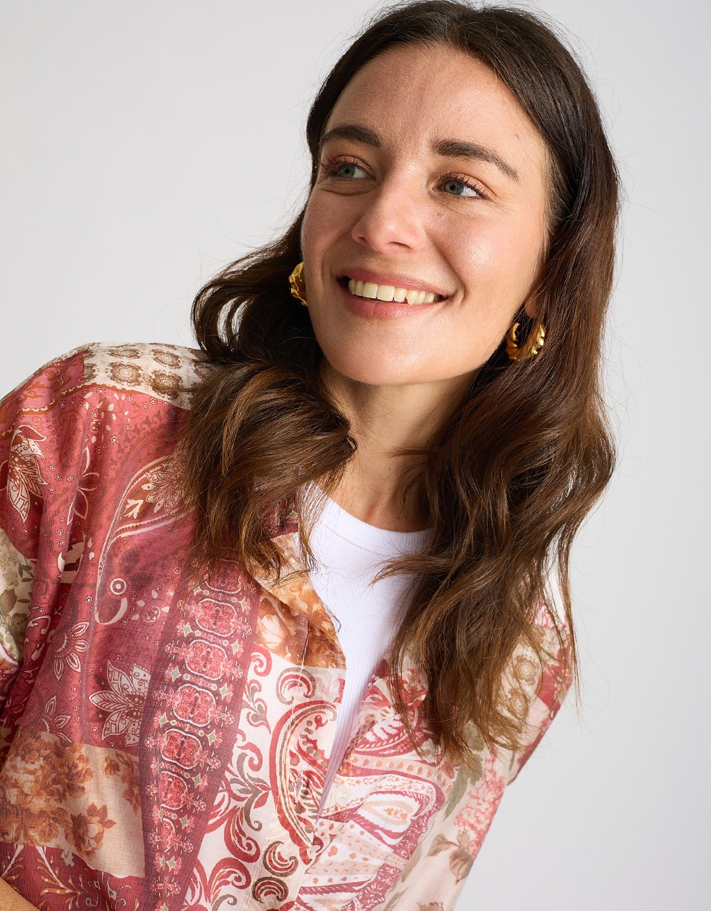 Camicia in misto tencel fresco e leggero, ideale per le giornate primaverili ed estive. Il collo classico e la chiusura con bottoni donano un tocco raffinato, mentre la manica lunga e la vestibilità morbida assicurano comfort e stile. Perfetta da indossare da sola o abbinata alla gonna tencel fantasia per un completo coordinato.
