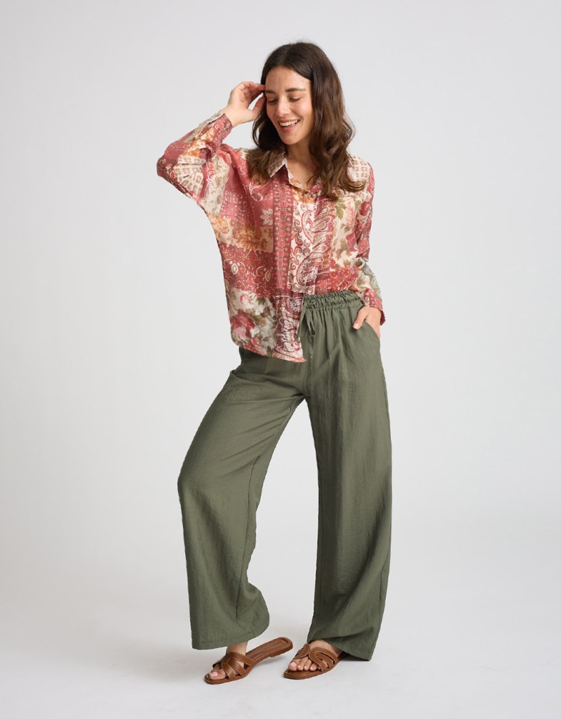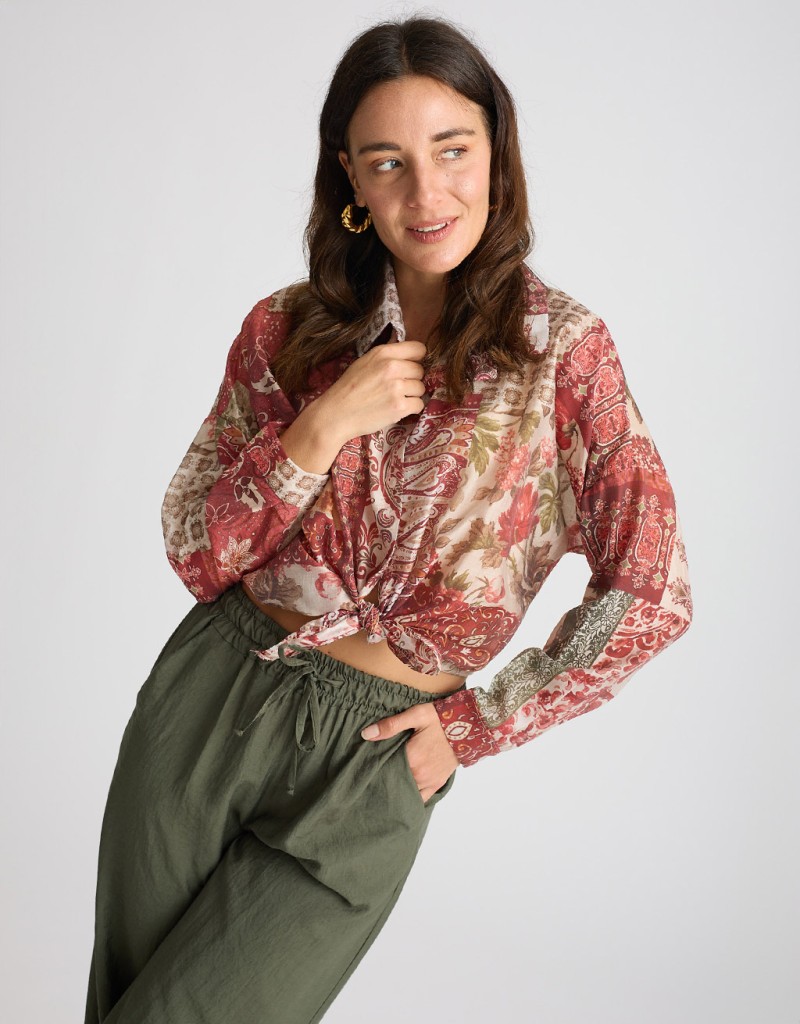 Camicia in misto tencel fresco e leggero, ideale per le giornate primaverili ed estive. Il collo classico e la chiusura con bottoni donano un tocco raffinato, mentre la manica lunga e la vestibilità morbida assicurano comfort e stile. Perfetta da indossare da sola o abbinata alla gonna tencel fantasia per un completo coordinato.