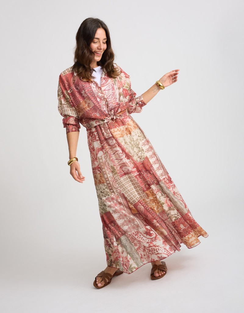 Gonna lunga in tencel fresco e leggero, perfetta per le giornate primaverili ed estive. L’elastico in vita adatta la vestibilità con comfort, mentre la fodera corta interna garantisce leggerezza e fluidità. Un capo versatile, ideale da indossare da solo o in coordinato con la camicia tencel fantasia cod. 31468.