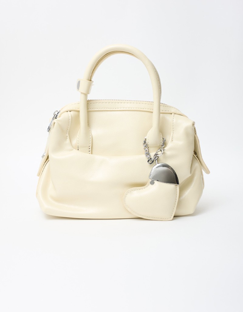 Mini city bag in finta pelle dal design compatto e contemporaneo, perfetta per accompagnarti dalla giornata alla sera con stile. La chiusura con cerniera garantisce praticità, mentre l’interno foderato e la mini tasca esterna con bottone a pressione aggiungono funzionalità. Completa il modello la tracolla removibile e il charm a cuore, un dettaglio femminile e giocoso che la rende unica.